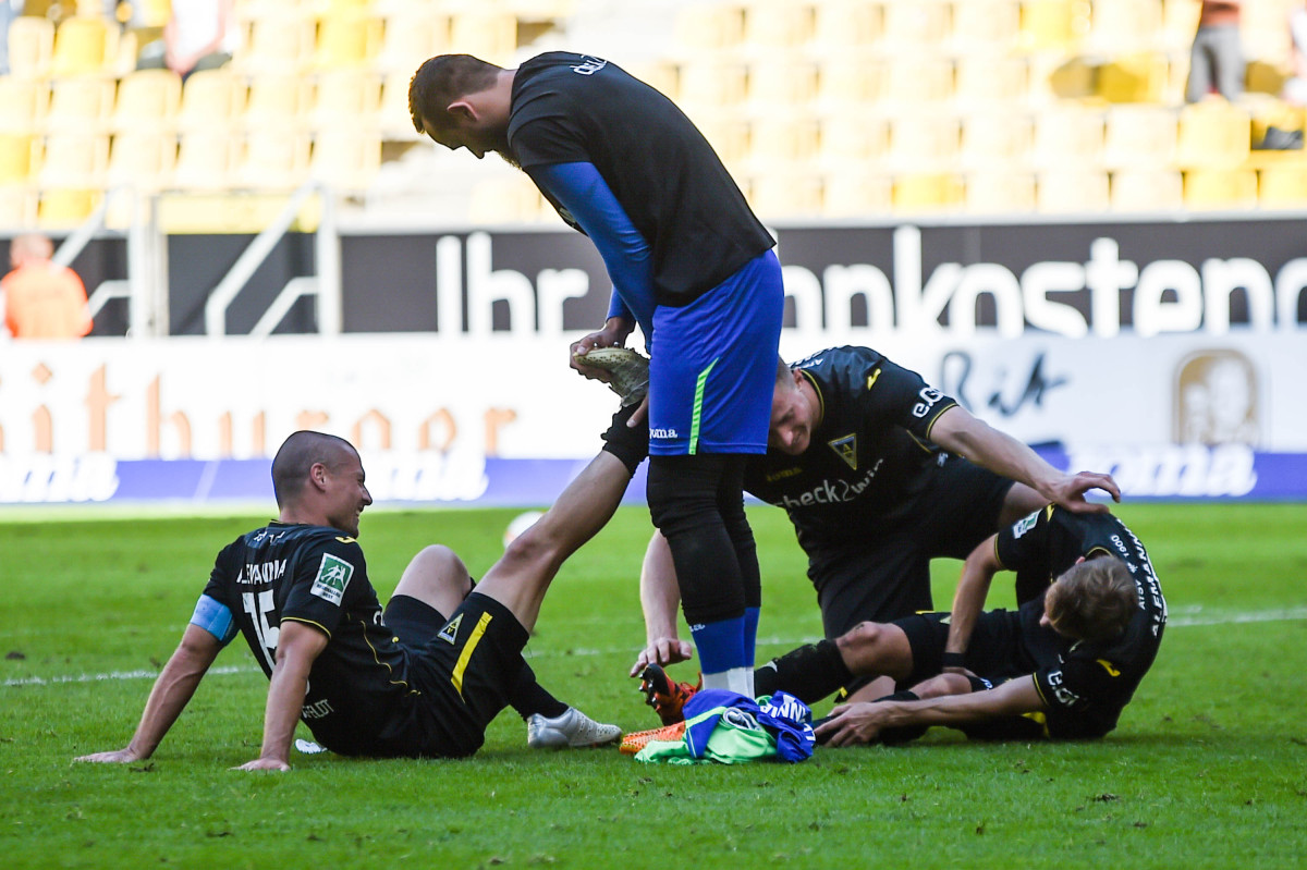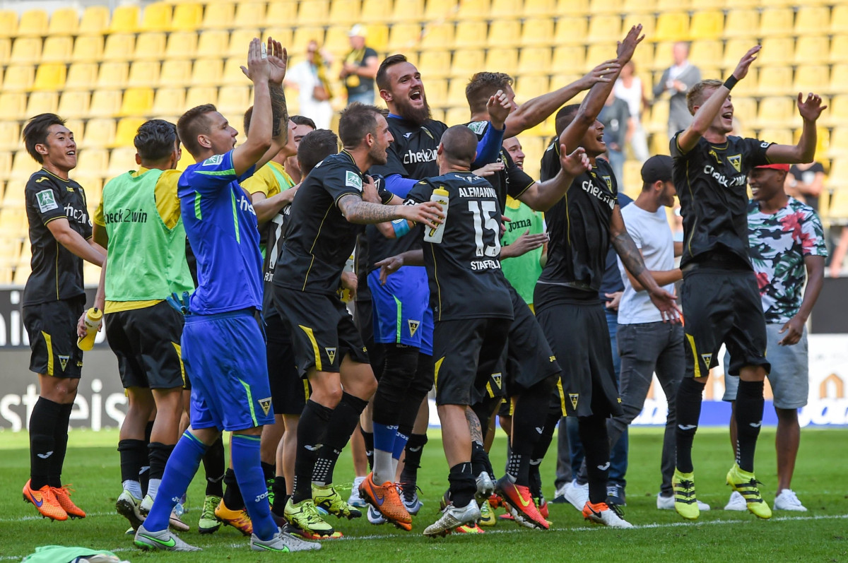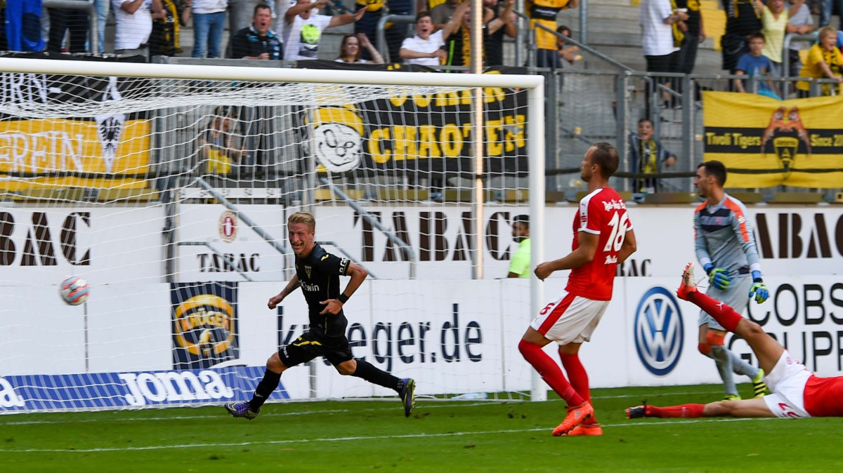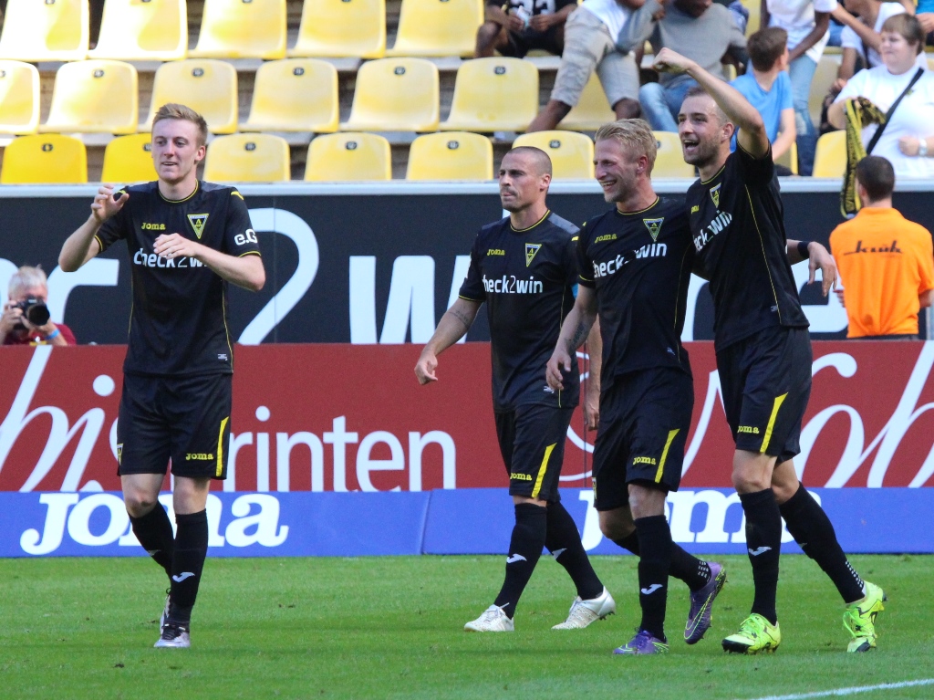 Der zweite Durchgang begann mit einer Kopfballchance für RWE. Zeiger köpfte die Rechtsecke von Rabihic aber einen Meter drüber. Auf der Gegenseite profitierte Ernst von einem Missverständnis zwischen Linksverteidiger Huckle und Heimann. Sein Schuss aus spitzem Winkel ging aber knapp drüber (58.). Das Spiel ging in die entscheidende Phase. Die Alemannia stand kompakt, konnte den entscheidenden Konter aber nicht setzen. Nach 77 Minuten hatten die Schwarz-Gelben Glück, als der eingewechselte Bednarski aus 20 Metern volley an die Querlatte traf. Die Dramatik spitze sich zu. Bundesliga-Referee Stegemann packte vier Minuten Nachspielzeit oben drauf, die es nochmal in sich hatten. Nach einer Kopfballstafette musste Winter zunächst kurz vor der Linie klären, dann hämmerte Bednarski das Leder in buchstäblicher letzter Sekunde auf das linke Lattenkreuz. Es bleib beim knappen 1:0-Erfolg für die Tivoli-Kicker.