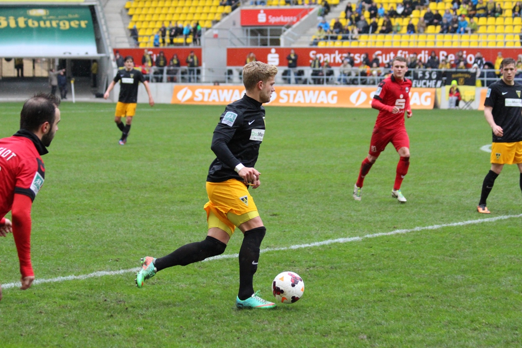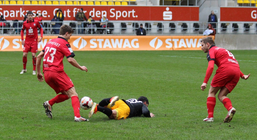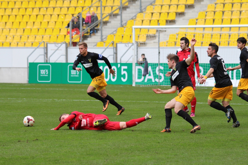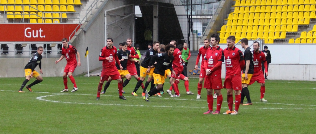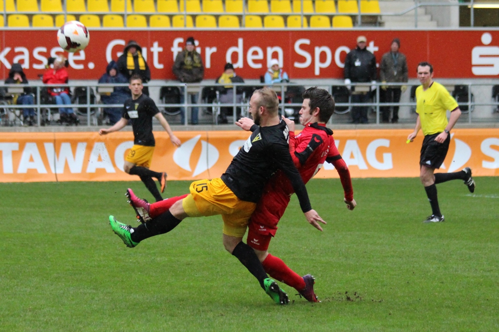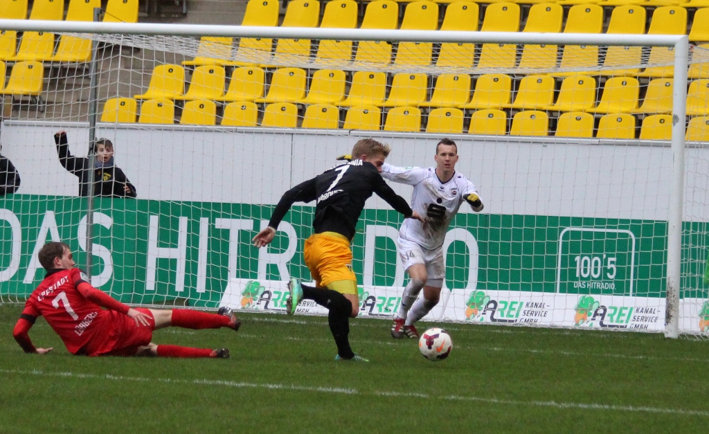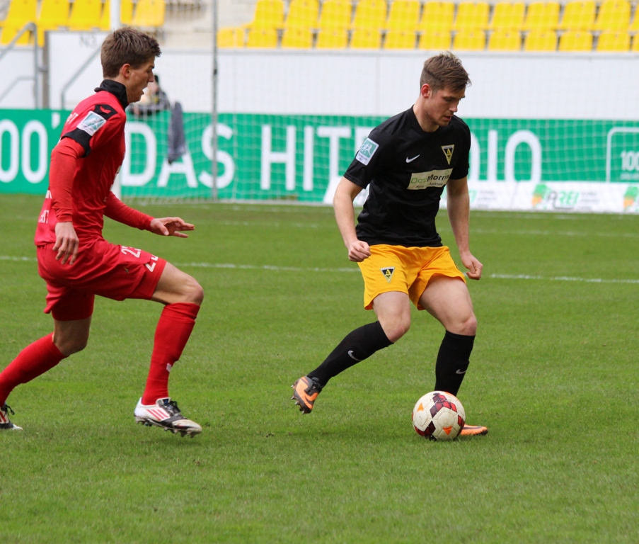 Nach 16 Minuten hätte Lippstadt eigentlich in Führung gehen müssen. Meier legte im Strafraum für Sturmpartner Traufetter auf, der das leere Tor vor sich hatte und aus drei Metern verzog. Keine zwei Minuten später holten die abstiegsbedrohten Gäste ihr Versäumnis nach. Die Aachener Abwehr bekam den Ball nicht aus der Gefahrenzone und nach einer Kopfballvorlage von Jevric stocherte Fritz die Kugel aus kurzer Distanz vorbei an Löhe - 0:1 (18.). Die Schwarz-Gelben zeigten sich fortan bemüht, doch mehr als ein Distanzschuss von Neppe (34.) und einen Freistoß von Abel (45.), die das Gehäuse jeweils um einen knappen Meter verfehlten, musste Lippstadt nicht an Torgefahr über sich ergehen lassen. Zwei Minuten vor dem Pausenpfiff hätten die Gäste dafür fast ein weiteres Mal zugeschlagen, doch Meier setzte seinen Flugkopfball nach einer Flanke von der rechten Seite knapp links neben das Aachener Tor.