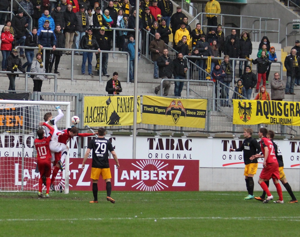 Die Alemannia hat einen möglichen Sieg in der Nachspielzeit noch aus der Hand gegeben. Gegen den SV Lippstadt konnten Mazan Moslehe und Sascha Marquet einen 0:1-Pausenrückstand in der Schlussphase zunächst drehen, doch in der Nachspielzeit kamen die Gäste vor 5.700 Zuschauern durch einen Kopfballtreffer noch zum 2:2-Ausgleich.