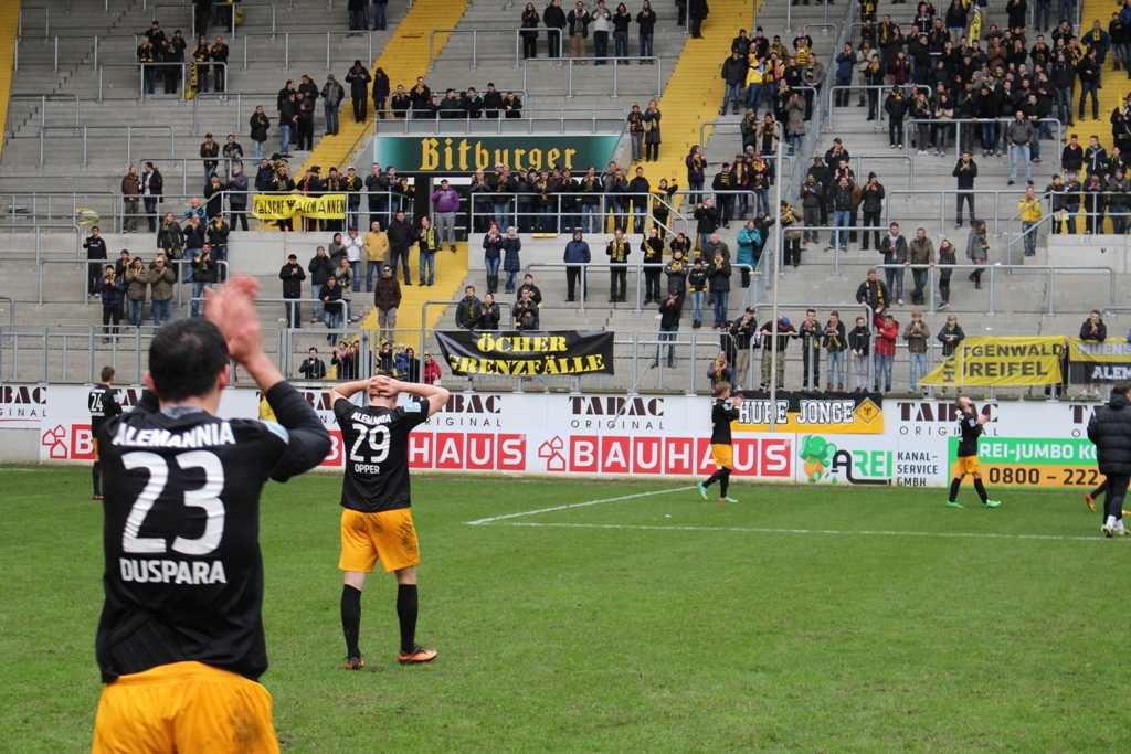 Am Fantreff (Bitburger Wall) gibt es bis 30 Minuten vor Anpfiff Karten für das Auswärtsspiel in Köln am 16.2., hier werden auch Anmeldungen für die Bussen zu den nächsten Auswärtsspielen entgegengenommen.