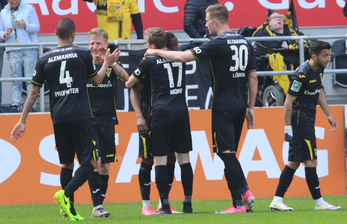 Am 28. Spieltag der Regionalliga West hat die Alemannia den zuletzt formstarken SV Rödinghausen besiegt. Vor 4.600 Zuschauern kamen die Schwarz-Gelben nach einem Rückstand noch zu einem deutlichen 4:1-Erfolg. Der eingewechselte Joy-Lance Mickels traf nach der Pause doppelt.