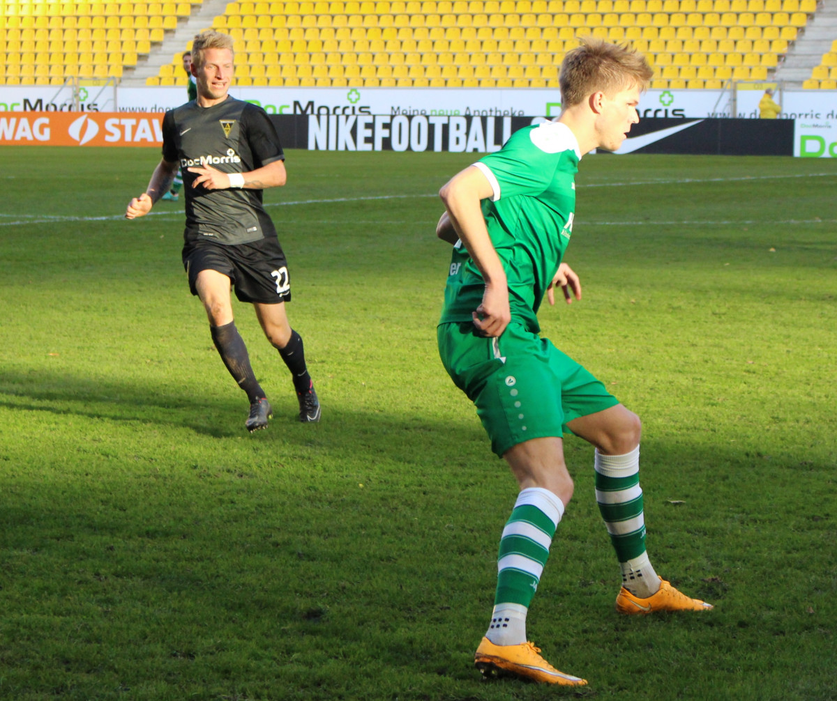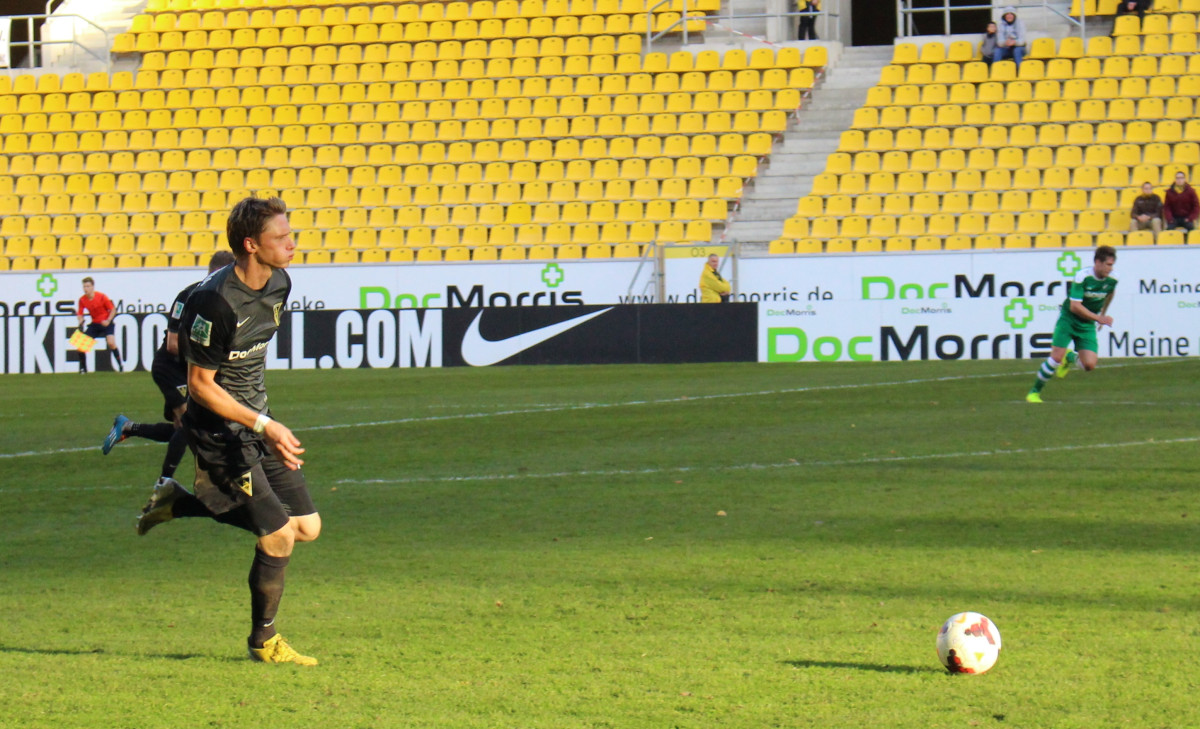 Die Alemannia musste auf den erkrankten Tim Jerat verzichten. Außerdem nahm Tim Lünenbach zunächst auf der Bank Platz. Kapitän Aimen Demai kehrte dafür ins Team zurück und Eigengewächs Tobias Mohr feierte sein Startelfdebüt. In einem lange Zeit ereignisarmen ersten Spielabschnitt hatte der Aufsteiger zunächst mehr vom Spiel, ohne dabei zu zwingenden Möglichkeiten zu kommen. „Wir sind immer hinterher gelaufen und haben zu viele Zweikämpfe verloren“, monierte Peter Schubert hinterher und stellte daher nach einer guten halben Stunde um. „Wir haben dann taktisch etwas anders agiert und besser ins Spiel gefunden“, stellte Aachens Coach zufrieden fest. Seine Mannschaft übte sich in Geduld und kam nach 42 Minuten kamen immerhin zur ersten Ecke des Spiels, die jedoch postwendend entschärft werden konnte. Rödinghausen versuchte sein Heil weiter in der Offensive und zahlte kurz vor dem Seitenwechsel Lehrgeld. Die Tivoli-Kicker konterten geschickt im eigenen Stadion. Graudenz hatte am rechten Flügel viel Platz. Seine Flanke fand Dowidat am langen Pfosten, der volley zum 1:0 vollenden konnte (43.). Mit diesem Resultat ging es in die Halbzeitpause.