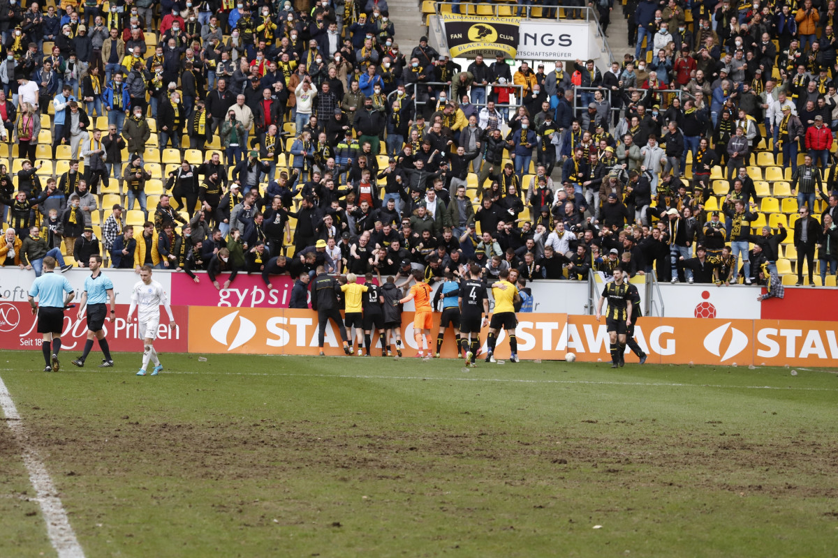 Dafür, dass dies auf den zweiten Abschnitt nicht zutrifft, sorgte nicht zuletzt die 49. Spielminute: Gündüz behielt nach einem Ballgewinn im Mittelfeld die Übersicht und setzte Held mit einem Sahnepass in Szene. Der rechte Außenbahnspieler legte quer für den einlaufenden Korzuschek, der die Kugel aus kurzer Distanz über die Linie bugsierte. Verdiente Führung für die Gastgeber, die im Anschluss weiter die tonangebende Mannschaft blieben. Insbesondere Gündüz und Schmitt machten über ihre linke Seite mächtig Dampf, mit dem die Hintermannschaft der Gäste nicht immer gut zurechtkam. Angetrieben von einer stimmungsvollen Ostkurve blieben die Alemannen am Drücker, obwohl das Team von Trainer Andy Steinmann nach dem eigenen Rückstand liefern musste. Der Gästecoach reagierte und wechselte mit Hakim Traoré und Cedric Euschen zwei Stürmer ein. Als gefährlichste Aktion hatte die Elf vom Autobahnkreuz allerdings nur einen Freistoß von Erhan Yilmaz zu verzeichnen (78.). Zwei weitere Halbchancen blieben zudem ohne Folge (66./67.). Um einiges besser machte es auf der anderen Seite Lars Oeßwein: Nach Zuspiel von Falaye lief der Einwechselspieler noch zwei, drei Meter und feuerte aufs Tor – das Spielgerät klatschte an den Querbalken (79.). Eine umkämpfte Schlussphase brach an, die einen unrühmlichen Höhepunkt bereithalten sollte: Kurz vor Ablauf der fünfminütigen Nachspielzeit eskalierte ein Zwist zwischen Müller und Traoré so sehr, dass Auswechselspieler, der Staff beider Mannschaften und Ordnungskräfte auf den Platz stürmten. Eine unübersichtliche Rudelbildung entstand, an deren Ende die beiden ursprünglichen Streithähne Gelb sahen, Alemannia-Ersatztorwart Luka Lošić jedoch mit Rot des Innenraums verwiesen wurde. Sportlich passierte dann nicht mehr viel, der vierte Sieg im fünften Heimspiel 2022 war unter Dach und Fach – gleichbedeutend mit dem Sprung über den Strich für die Alemannia. Trainer Kilic bilanzierte: „Wir sind gut aus der Kabine herausgekommen und haben dann in der zweiten Halbzeit befreiter aufgespielt. So möchte ich das sehen. Wir haben dann unsere Tugenden wieder auf den Platz gebracht, weshalb der Sieg am Ende auch verdient war.“