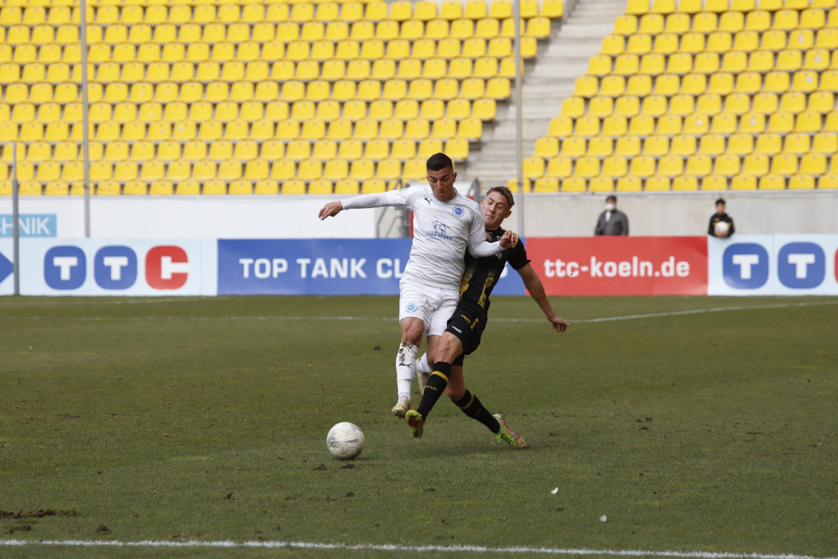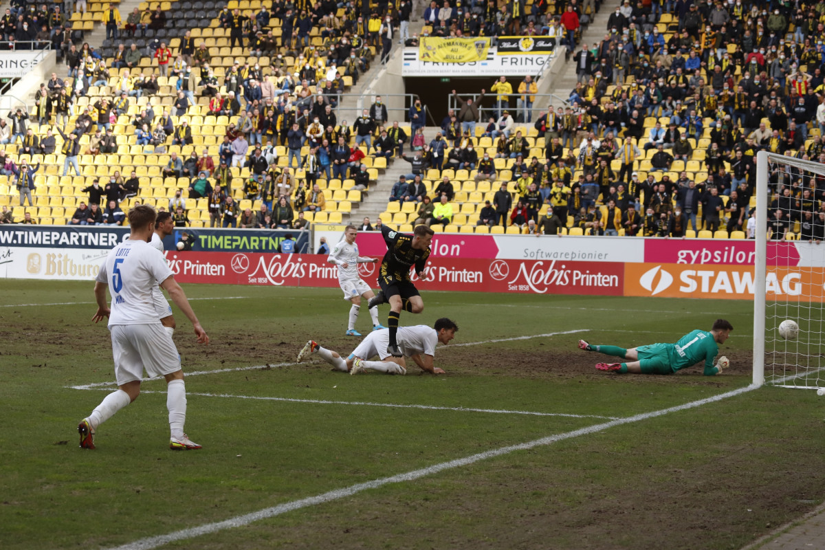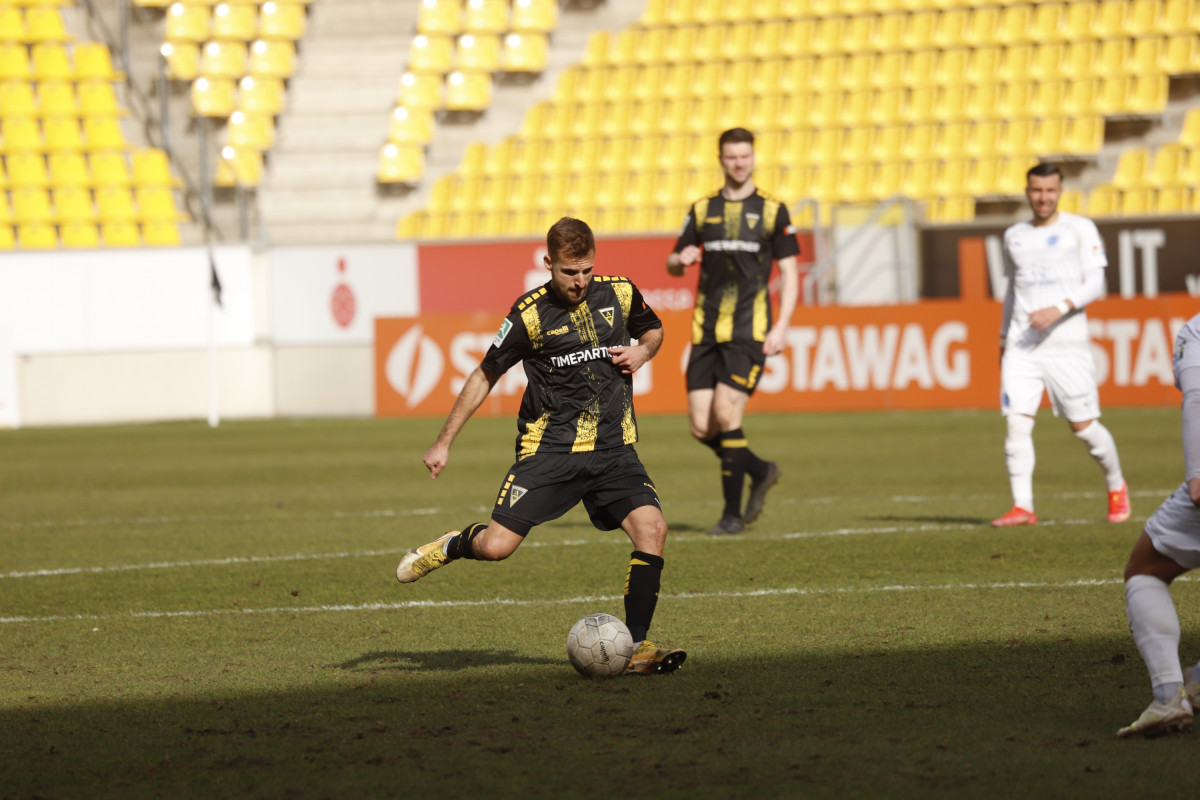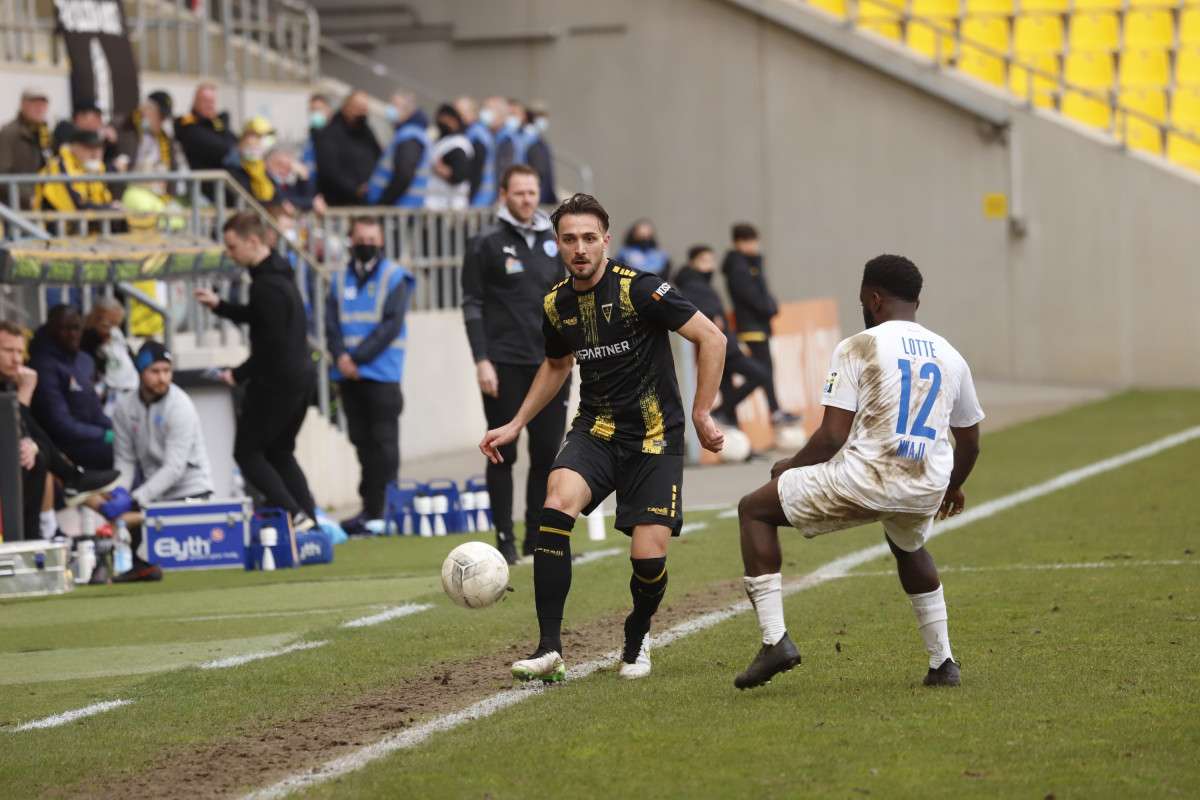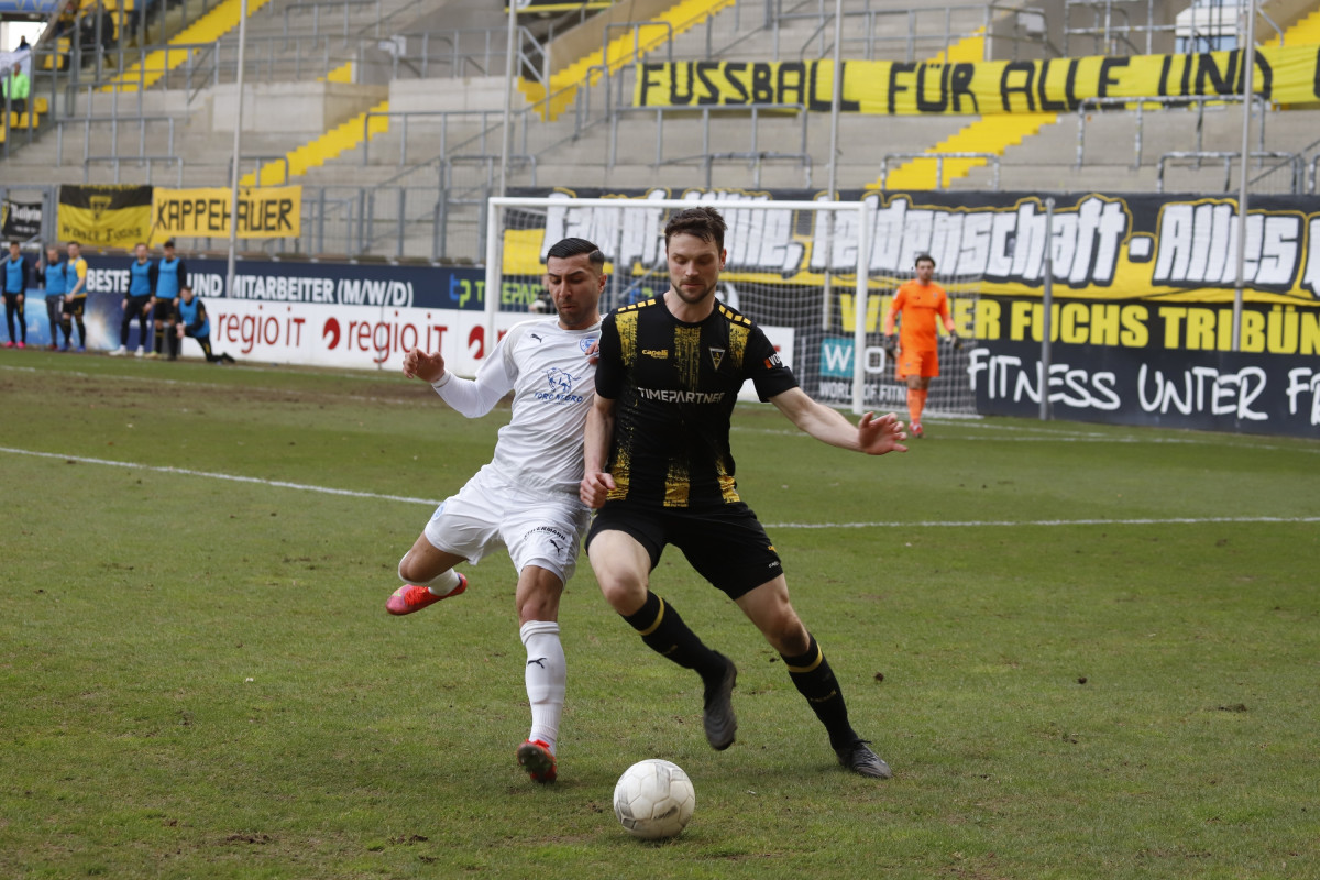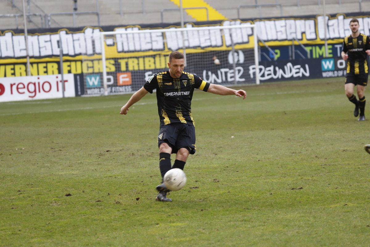 Der Tabellen-16. traf auf den 18., wieder einmal stand für die Alemannia ein Spiel gegen einen direkten Konkurrenten im Abstiegskampf an. Dieses sollte am Ende ungefähr so verlaufen, wie es im Vorfeld erwartet wurde – wacker kämpfende Gäste verlangten entschlossen auftretenden Alemannen alles ab, dennoch reichte es für die Schwarz-Gelben am Ende zu einem umjubelten 1:0-Sieg, der der Elf von Fuat Kilic im unteren Tabellendrittel wieder etwas Luft verschafft. Doch der Reihe nach. Für die Partie gegen die Westfalen hatte der Trainer sein Team auf fünf Positionen verändert – Jannis Held, Dino Bajric, Ergün Yildiz, Ricardo Antonaci und Marcel Damaschek liefen für Lukas Wilton, den gesperrten Peter Hackenberg, Tugrul Erat, Tim Korzuschek und Hamdi Dahmani von Beginn an auf. Wieder einmal erwischte die Alemannia einen guten Start – so hatte Selim Gündüz nach bereits vier Minuten die erste Gelegenheit auf das Führungstor, als er eine Flanke von Marco Müller mit der Brust aufs Tor von Jhonny Peitzmeier brachte, der parieren konnte. In der Folge machte die Alemannia zwar das Spiel gegen offensiv schwache Gäste, richtige Torchance sprangen jedoch nicht dabei heraus. Nur Oluwabori Falaye setzte eine Flanke aus dem Halbfeld von Sebastian Schmitt noch mit dem Kopf an den Außenpfosten (19.). Weiterhin passierte nicht mehr viel in Durchgang eins, sodass Kilic nach der Partie urteilte: „Mit der ersten Halbzeit kann ich so nicht zufrieden sein.“
