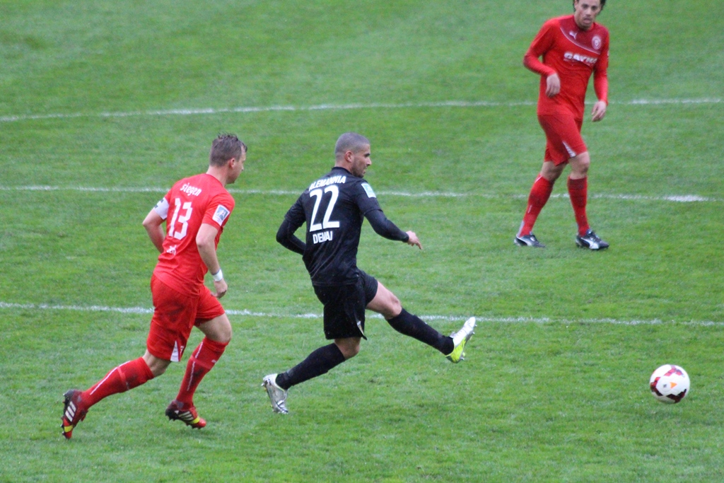 Dennis Dowidat musste bei den Alemannen aufgrund von Problemen im Adduktorenbereich passen. Dafür stand Aimen Demai erstmals seit dem 7. August 2012 wieder in der Startformation. Ansonsten vertraute Peter Schubert demselben Personal, welches in der Vorwoche in Bochum einen weiteren Auswärtserfolg landen konnte. Bereits nach drei Minuten wäre Demai bei seinem Comeback fast als Vorlagengeber in Erscheinung getreten. Ein Freistoß von der rechten Seite landete am langen Pfosten bei Hoffmann, den die Siegener Ab wehr aus den Augen verloren hatte. Der Innenverteidiger traf das Leder aber nicht optimal und der Kopfballaufsetzer ging knapp links vorbei. Auch die zweite Möglichkeit für die Tivoli-Kicker resultierte aus einem ruhenden Ball. Nach einer Linksecke von Demai kam Ex-Alemanne Rauhut im Siegener Tor nicht an die Kugel und der Kopfball von Duspara senkte sich auf dem Tornetz nieder (10.). Eine Stevens-Hereingabe von der linken Seite rundete die starke Anfangsphase der Schwarz-Gelben ab. Duspara kam am Fünfmeterraum eine Fußspitze zu spät und verpasste den Ball knapp (13.). Nach einer halben Stunde wurde auch der Tabellendritte aus dem Siegerland plötzlich gefährlich vor dem gegnerischen Gehäuse vorstellig. Nach einem Doppelpass mit Bouadoud tauchte Hettich wie aus heiterem Himmel frei vor Löhe auf, doch der Aachener Schlussmann entschied das Duell reaktionsstark zu seinen Gunsten (30.). Erstmals knifflig wurde es für das Schiedsrichtertrio vier Minuten später. Ein abgewehrter Schuss von Hettich landete vor den Füßen von Bouadoud, der die Kugel vorbei an Löhe schob. Da der Angreifer zuvor allerdings im Abseits stand, wurde der Treffer zu Recht nicht anerkannt. So ging es für beide Teams torlos in die Pause.
