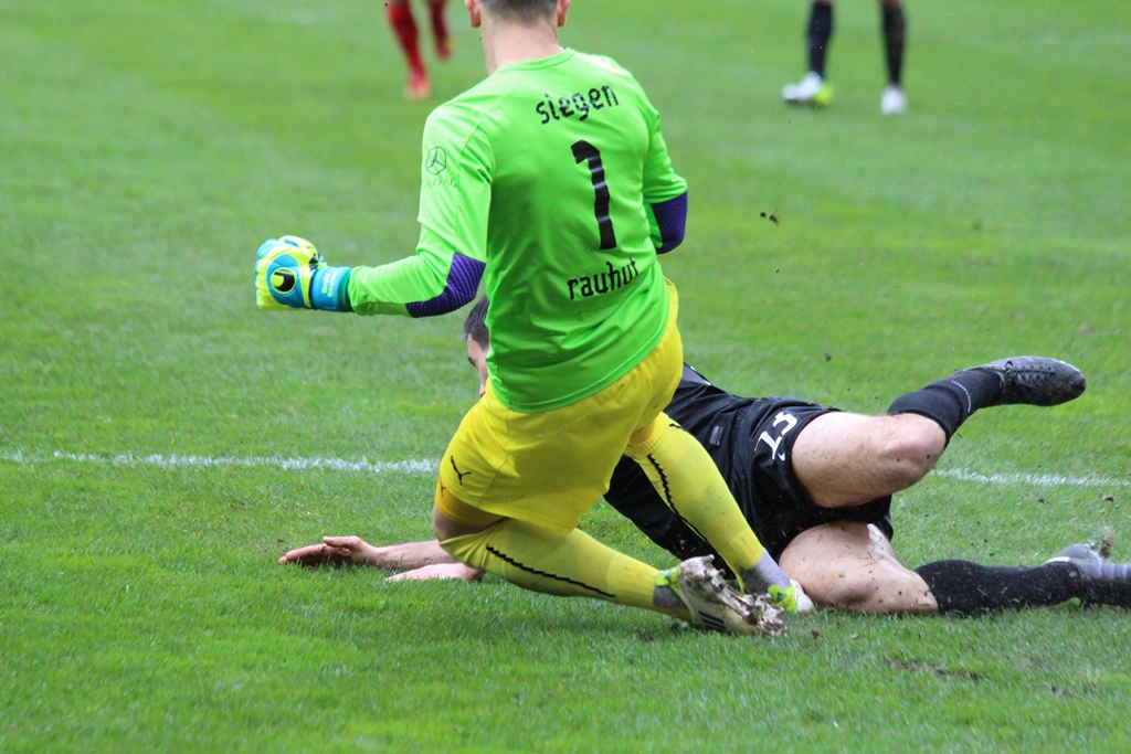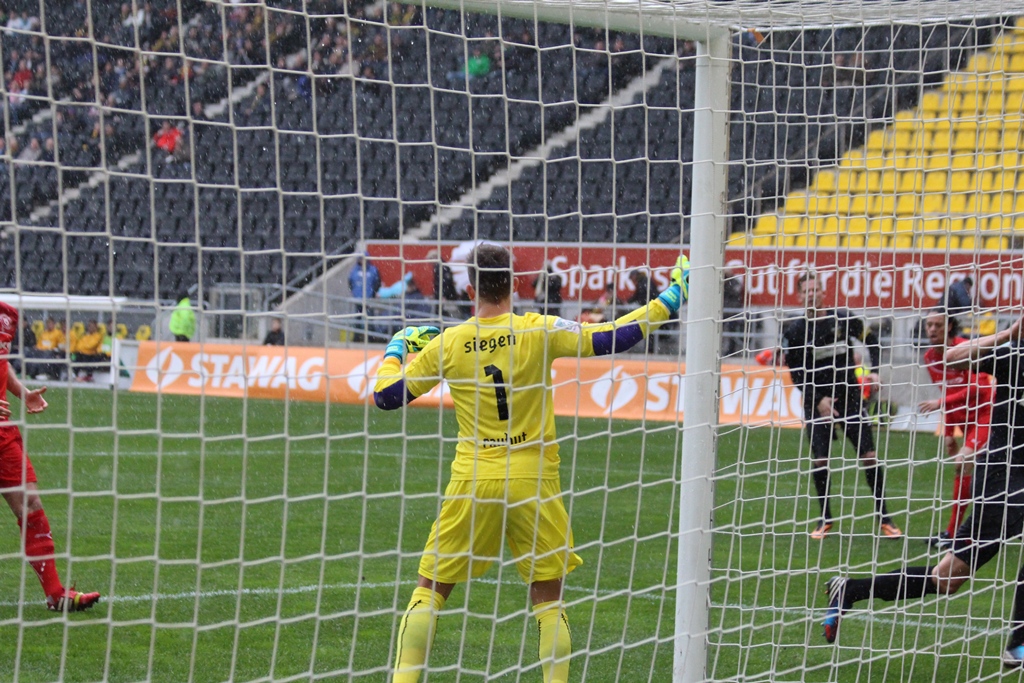 Nach dem Seitenwechsel rückte erneut Schiedsrichter Heien in den Mittelpunkt. Stevens drang in den Siegener Strafraum ein und ging im Zweikampf mit dem Siegener Kapitän Zeh zu Boden. Der Unparteiische kam der Aachener Strafstoß-Forderung nicht nach und entschied auf Weiterspielen (59.). In der Schlussphase waren die Gäste aus dem Siegerland einem Torerfolg näher. Nach einem Eichmeier-Freistoß aus dem linken Halbfeld hatte sich Bouadoud am langen Pfosten absetzen können. Seine Direktabnahme aus spitzem Winkel traf jedoch nur das Außennetz (69.). Nach einem langen Diagonalball von Hettich lief der Siegener Angreifer acht Minuten später aus spitzem Winkel auf Löhe zu, doch der Aachener Schlussmann spitzelte Bouadoud das Leder vom Fuß (77.). Auch die letzte Möglichkeit des Spiels vereitelte Löhe gekonnt. Erneut Bouadoud war es, der sich im Strafraum durchsetzen konnte und aus 14 Metern abzog. Löhe parierte jedoch mit beiden Fäusten sicher und besiegelte so die torlose Punkteteilung auf dem Tivoli. Die Gäste aus Siegen blieben damit im zwölften Spiel in Serie unbesiegt. Für die Alemannia geht es am kommenden Dienstag mit dem Auswärtsspiel bei Viktoria Köln weiter. Nach sechs Spielen in der Fremde ohne Niederlage hoffen die Schwarz-Gelben darauf, auch ihre Serie fortsetzen zu können.