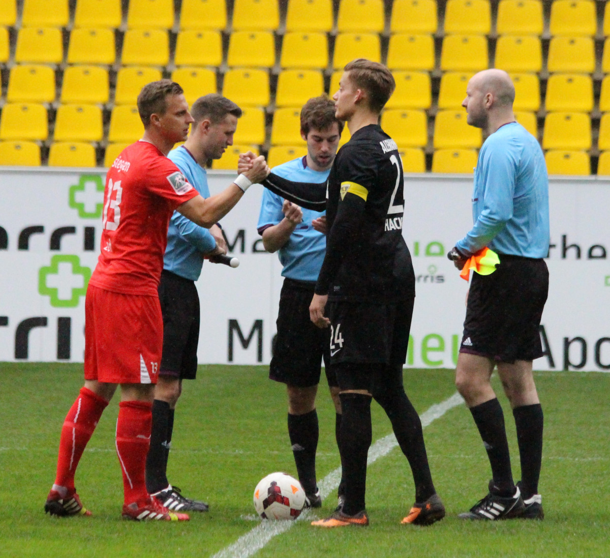 Alemannia Aachen: Löhe – Schumacher, Hackenberg, Hoffmann, Stevens – Neppe, Lejan – Marquet, Demai (73. Strujic), Garcia (81. Abel) – Duspara / Trainer: Hans-Peter Schubert