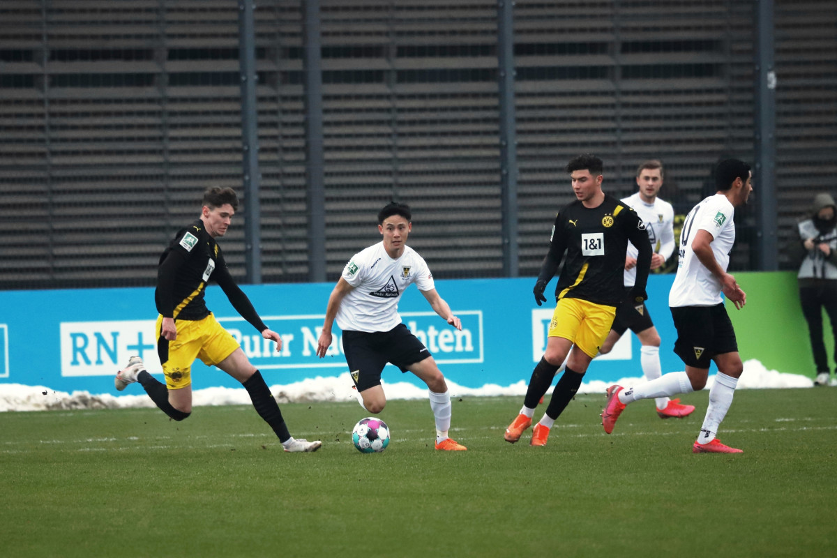 Borussia Dortmund II: Drljaca – Hippe, Dams, Maloney – Duman, Osterhage (46. Hober), Raschl, Pfanne, Knauff (82. Wanner) – Tachie (71. Finnsson), Broschinski (64. Bakir) / Trainer: Enrico Maaßen