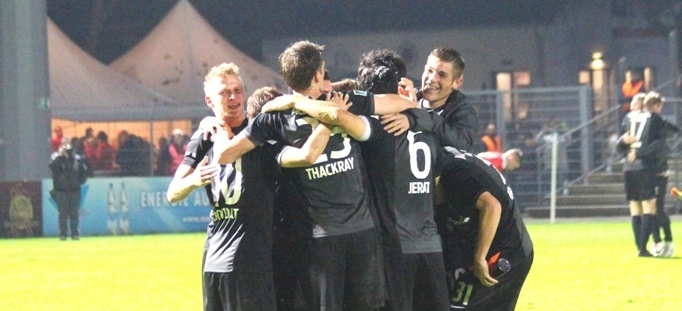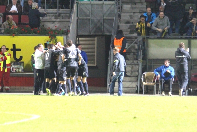 Die letzten Sekunden waren nichts für schwache Nerven. Als nach 94 Minuten endlich der finale Pfiff ertönte, kannte der Jubel auf den Rängen keine Grenzen mehr. Über 3.000 mitgereiste Aachener Anhänger unter den 4.512 Zuschauern im Sportpark Höhenberg waren völlig aus dem Häuschen. Durch einen späten Treffer von Dennis Dowidat hatte die Alemannia bei Viktoria Köln mit 1:0 (0:0) gewonnen und konnte nach Punkten mit dem Spitzenreiter gleichziehen. Die Karten in der Regionalliga West wurden zum Auftakt 14. Spieltags neu gemischt.