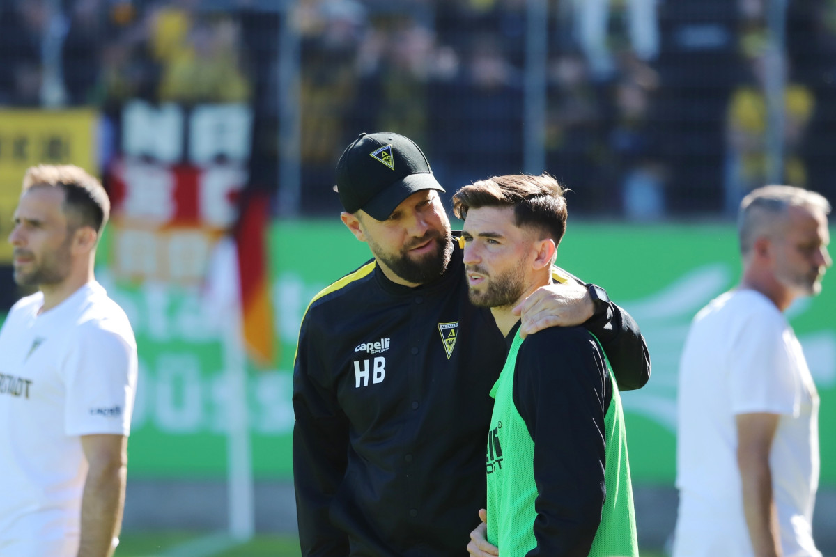 Im zweiten Durchgang sahen die 1.260 Zuschauer, von denen ein sehr großer Anteil Alemannia-Anhänger waren, die Energie, die Backhaus vor dem Spiel forderte. Gleich in der 47. Minute hatte dien Schwarz-Gelben die erste Möglichkeit, als Sasa Strujic nach einem langen Einwurf aus dem Rückraum zum Schuss kam, der noch geblockt wurde. Auch der zur Pause eingewechselte Elsamed Ramaj hatte nach dem Block die Chance zum Schuss, zielte aber drüber. Nur wenige Minuten später stand Ramaj wieder im Fokus, als er nach einem guten langen Ball von Heinz in seinen Lauf, alleine auf Torhüter Gorka zulief. Im Strafraum wurde Aachens Angreifer noch geschubst, sodass er keinen kontrollierten Abschluss mehr zustande bringen konnte (52.). Die Alemannia zeigte sich nach dem Seitenwechsel insgesamt zielstrebiger und kam zu mehr Möglichkeiten. Ein Schuss von Strujic wurde aber noch zur Ecke abgelenkt (57.). In der 67. Minute hätte sich eine weitere gute Möglichkeit ergeben können. Nachdem Peters einen Pass in aussichtsreicher Position abfangen konnte, entschied sich aber dann für den falschen Pass, sodass der mitlaufende Ramaj nicht zum Abschluss kommen konnte. Ramaj versuchte es weiter und lief in der 76. Minute den Düsseldorfer Keeper an, der ihn sogar anschoss. Der Ball prallte allerdings ins Toraus ab. Kurz darauf hatten die Alemannen dann Glück, als an eine Hereingabe niemand mehr rankam, der Ball aber dann gegen Pfosten knallte (77.). Der aktive Ramaj war auch bei der nächsten Gelegenheit der Initiator. Er ging nach einer Ecke an allen vorbei Richtung Grundlinie und spielte zurück auf Schaub, der aus dem Strafraum aber drüber schoss (79.). In der 82. Minute legte sich Heinz einen Freistoß aus ähnlicher Position zurecht, aus der er vor einer Woche den Siegtreffer erzielte. Dieses Mal traf er allerdings nur die Latte (82.). Kurz vor Schluss war es dann plötzlich die U23, die den Siegtreffer auf dem Fuß hatte. Marcel Johnen konnte den Schuss von Min-Woo Kim aber glänzend parieren (89.). In der Nachspielzeit hatte Peters noch zweimal die Möglichkeit, den entscheidenden Treffer zu erzielen. Sowohl sein Schuss aus der Drehung als auch ein Kopfball aus wenigen Metern Sekunden vor Abpfiff fanden aber nicht den Weg ins Tor. So blieb es trotz zahlreicher guter Chancen in der zweiten Halbzeit beim torlosen Remis. Trainer Heiner Backhaus zeigte sich nach dem Spiel enttäuscht darüber, dass die Mannschaft erst in der zweiten Halbzeit die nötige Intensität zeigte: „Wir haben eine sehr gute zweite Halbzeit gespielt, in der wir viele Chancen hatten. Mehr bekommst du in der Regionalliga nur selten, um den Sieg zu erzielen. Wir müssen aber dringend dahinterkommen, warum wir nicht von Beginn an so gespielt haben.“