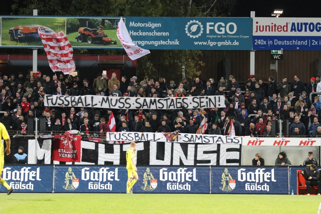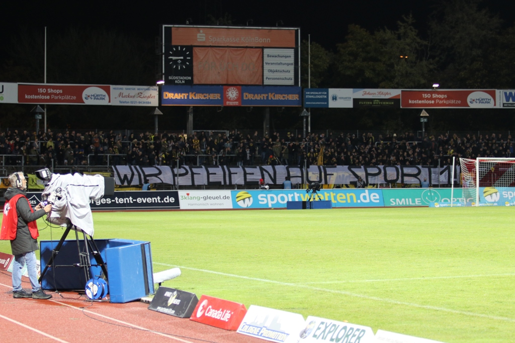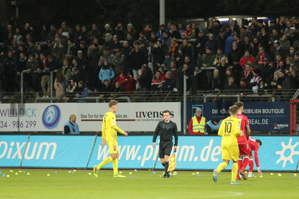 16 Minuten Unterbrechung nach 29 Spielminuten wegen Fanprotesten – Gelbe Karte für Kölns Co-Trainer Muhovic (83.)