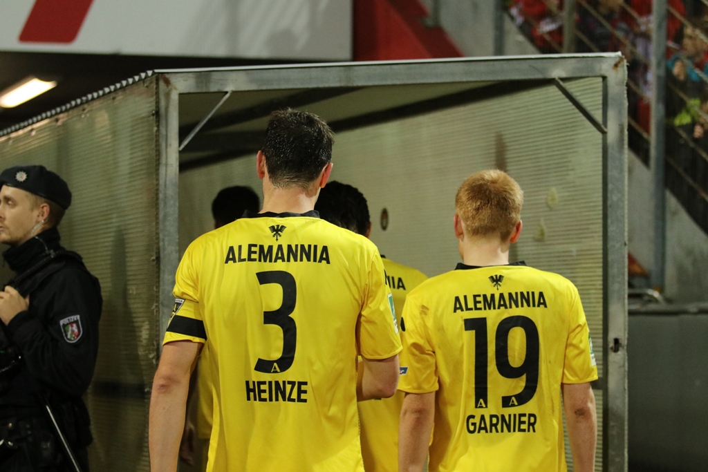 Bei der Alemannia gab es zwei Änderungen im Vergleich zum letzten Ligaspiel. Patrick Salata verteidigte für den gesperrten André Wallenborn (5. Gelbe) hinten links und David Pütz begann im zentralen Mittelfeld anstelle von Steven Rakk. Nach zehn Minuten ging die erste Chance des Spiels auf das Konto der Kaiserstädter. Fiedler verlängerte eine Ecke von Bösing am kurzen Pfosten und Pütz platzierte seinen Kopfball knapp rechts am Tor vorbei. Alemannia-Schlussmann Cymer musste die Handschuhe erstmals in Minute 14 auspacken, als er einen Freistoß von Hoffmann aus 18 Metern im Nachfassen sicherte. Nachdem die Alemannen nach Eckbällen zu Absschlussaktionen von Salata (22.) und Fiedler (24.) gekommen waren, traf Bender nach einer Rechtsflanke von Ochojski für die Hausherren nur das Außennetz (25.). Wenig später behauptete Heinze eine Freistoßhereingabe von Bösing im Strafraum und legte für Pütz ab. Dessen Schuss aus zehn Metern war aber etwas zu hoch (27.).