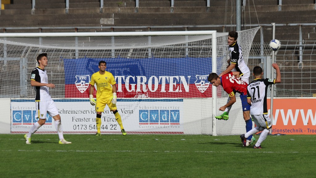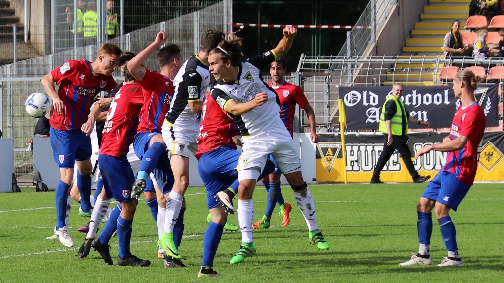 Mit drei personellen Änderungen startete Aachen in die Partie. Maurice Pluntke (5. Gelbe Karte) und Tobias Mohr (Muskelfaserriss) fehlten im Aufgebot. Tobias Lippold saß zunächst auf der Bank. Matti Fiedler, Emre Yesilova und Ilias Azaouaghi durften von Beginn an ran. Beide Teams begegneten sich mit offenem Visier, sodass sich eine unterhaltsame Partie entwickelte. Die Alemannen agierten selbstbewusst und kamen nach 18 Minuten zur ersten Großchance. Winter flankte von rechts. Torunarigha köpfte und das Leder prallte auf die Latte. Nur Sekunden später kam Fiedler nach einer Rechtsecke frei zum Kopfball. KFC-Keeper Vollath tauchte ab und parierte auf der Linie bärenstark (19.). Der Tabellenführer kam einem Torerfolg in Minute 24 erstmals nah. Krempicki zog von rechts nach innen. Seinen Aufsetzer aus 16 Metern konnte Nettekoven aber noch um den Pfosten lenken. Die anschließende Ecke passte Krempicki flach nach innen. Erb zielte aus 14 Metern knapp rechts daneben (25.). Kurz vor dem Pausenpfiff fuhren die Tivoli-Kicker noch einen Konter. Kühnel eroberte die Kugel und passte in den Lauf von Fejzullahu, der allerdings einen optimalen Abschluss verpasste (45.).