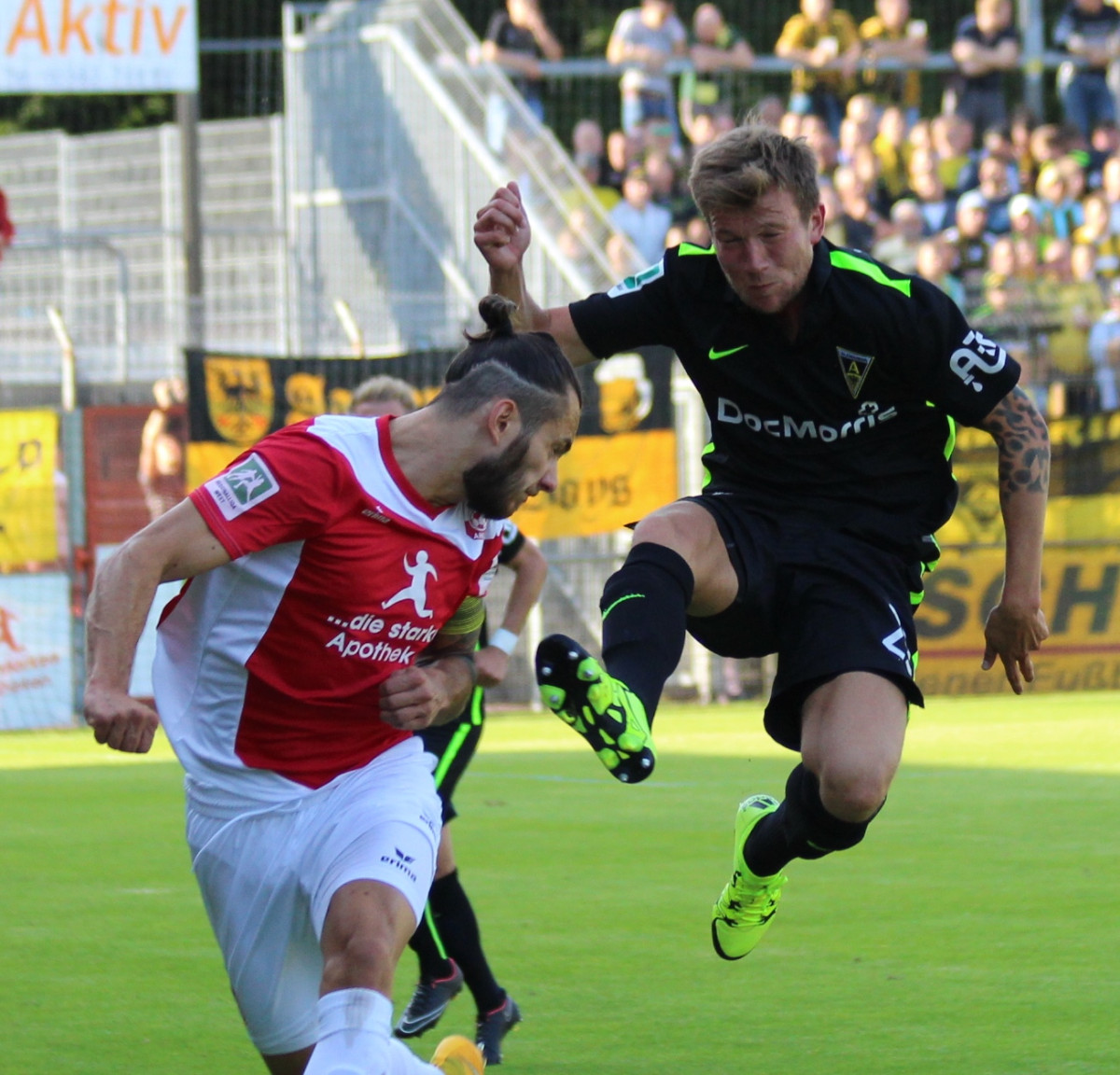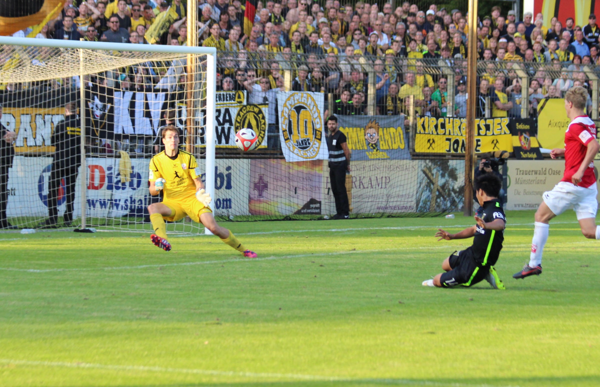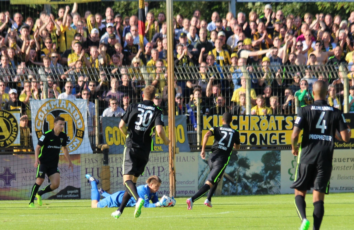Die Alemannia ist mit einem Sieg in die Saison 2015/2016 gestartet. Ein Kopfballtreffer von Jannik Löhden entschied das Eröffnungsspiel der Regionalliga West beim Aufsteiger Rot Weiss Ahlen vor 5.112 Zuschauern im Wersestadion zu Gunsten der Schwarz-Gelben.