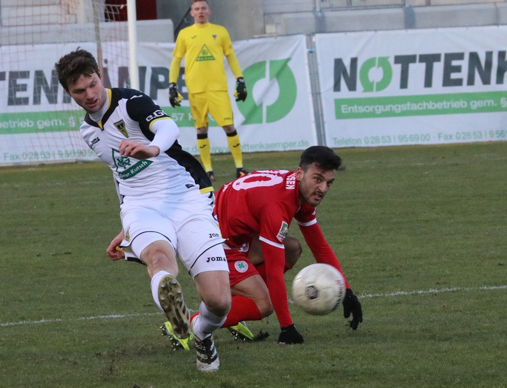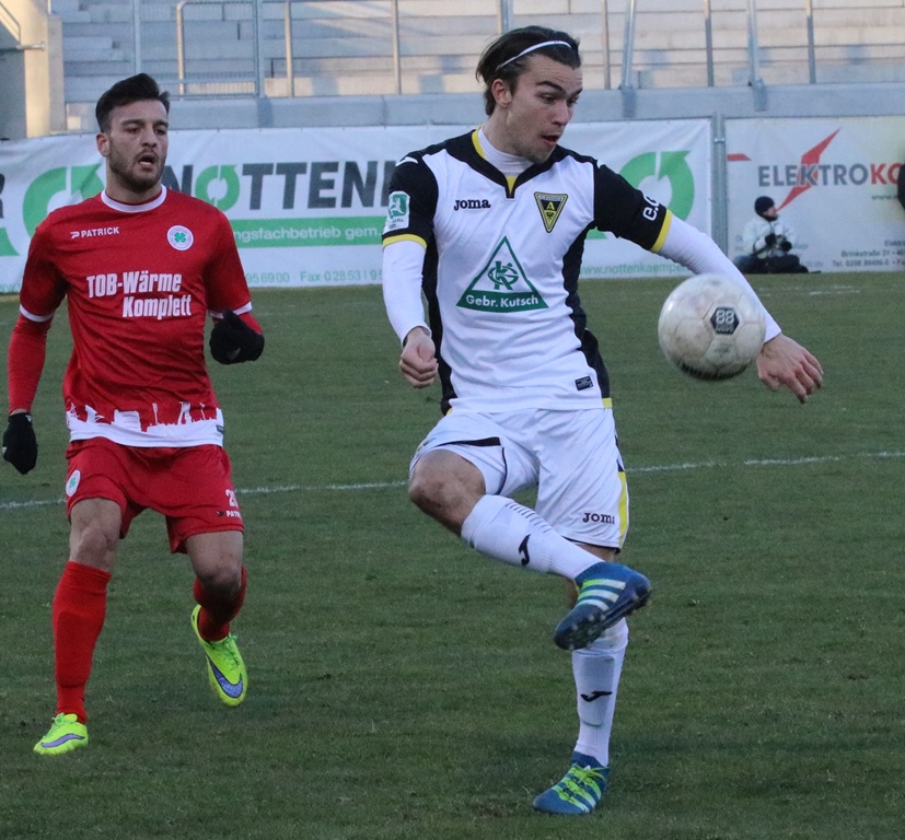 Lippold zog aus 25 Metern ab und Udegbe konnte das Leder so gerade noch über die Latte lenken. Nach der anschließenden Kühnel-Ecke kam Mickels frei zum Kopfball, doch erneut konnte Udegbe stark parieren (35.). Nur eine Minute später flog ein Aufsetzer von Kühnel knapp am linken Pfosten vorbei. Oberhausens Verteidiger Haas brachte nach einer weiteren Kühnel-Ecke per Kopf den eigenen Torwart  in arge Verlegenheit (40.). Schließlich war es ein Schuss von Mickels, der nach Ablage von Fejzullahu aus 14 Metern das Ziel verfehlte (42.). „Wir haben die Anfangsphase verschlafen. Oberhausen war in der ersten halben Stunde griffiger und williger in den Zweikämpfen. Wir haben danach umgestellt und hätten vor der Pause eigentlich den Ausgleich verdient gehabt“, sagte Fuat Kilic nach der Partie.
