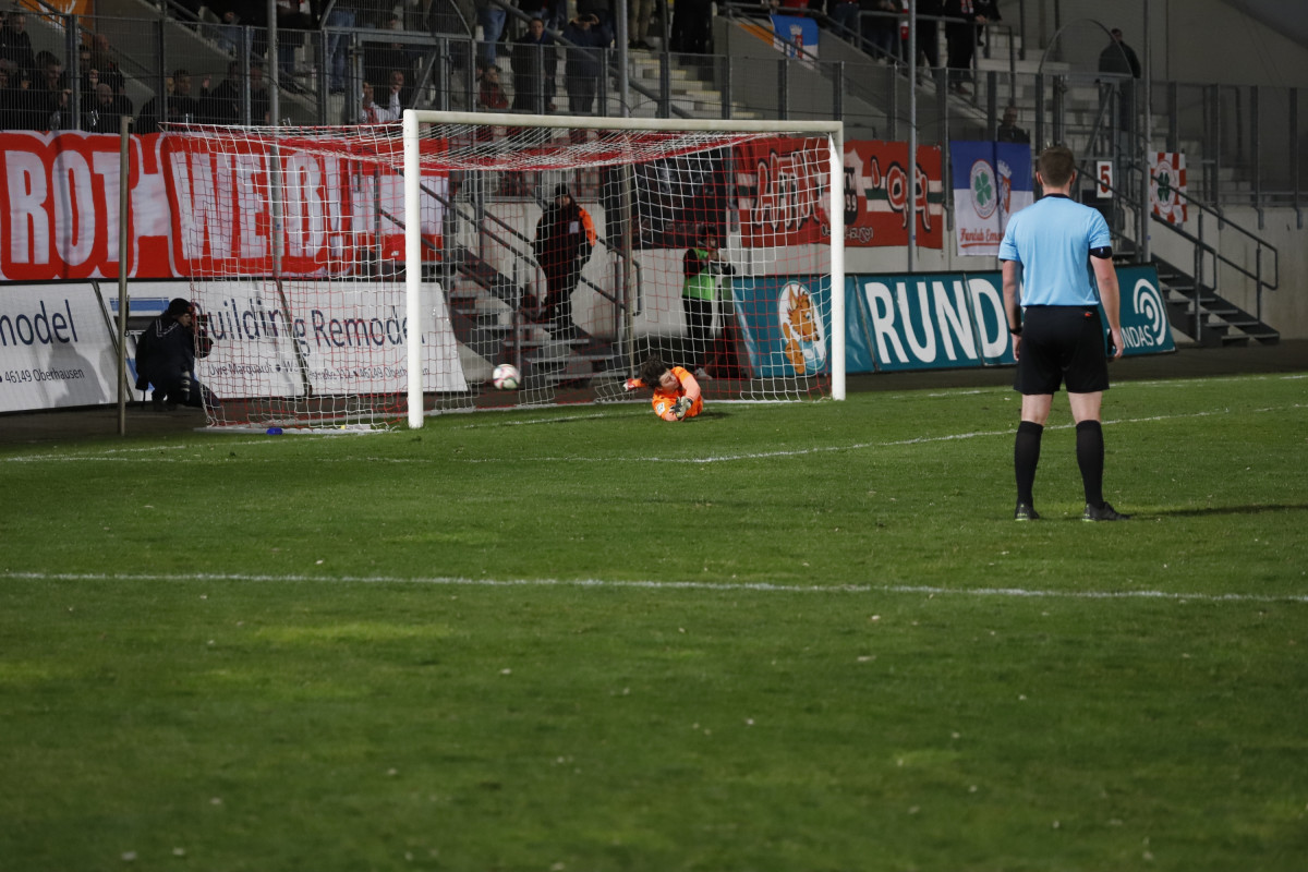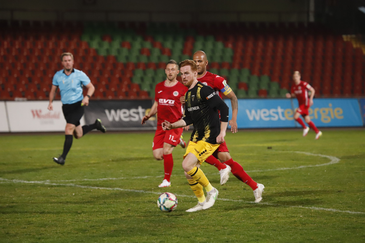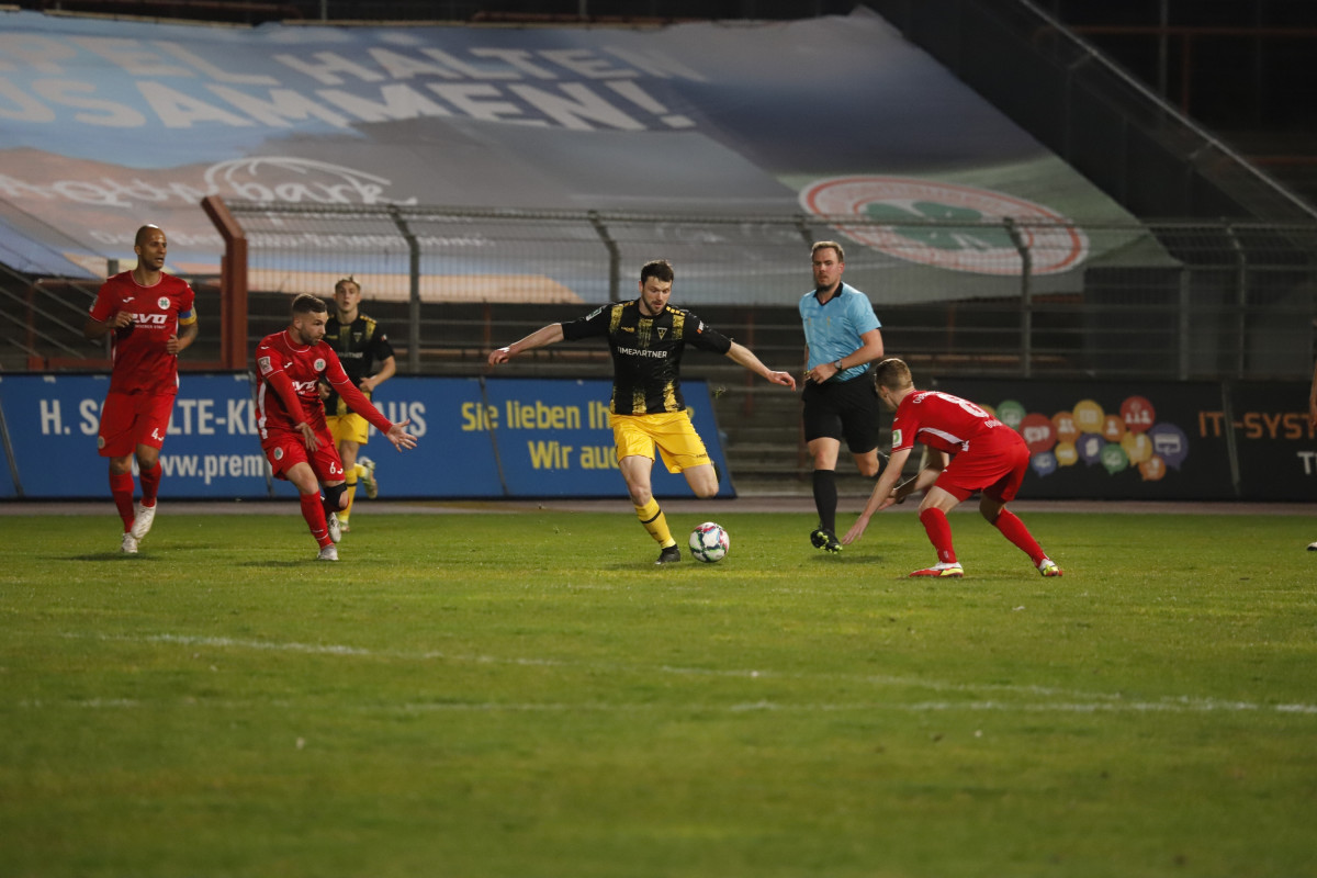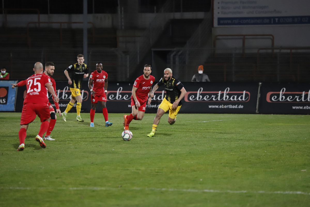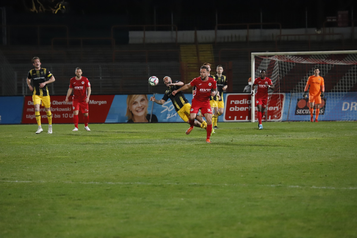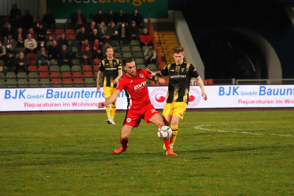 Der zweite Abschnitt startete etwas schleppender, Tim Korzuschek sorgte nach einer Viertelstunde für den ersten kleineren Aufreger, als er per langem Ball auf die Reise geschickt wurde, zwei Verteidiger stehen ließ und abzog – das Leder flog knapp rechts vorbei (60.). Gerade hatten die Gäste wieder etwas ins Spiel gefunden und am Ausgleich gefeilt, da brachte eine ungestüme Aktion von Marcel Damaschek die Schwarz-Gelben auf die Verliererstraße: Der Verteidiger ging gegen Nils Winter im eigenen Strafraum ungeschickt in den Zweikampf und holte den früheren Aachener von den Beinen – Elfmeter. Kreyer trat an und verwandelte unten links, obwohl Mroß die Ecke ahnte (67.). Jetzt wurde es für die Kilic-Truppe knifflig. Die letzte Durchschlagskraft fehlte an diesem Abend vor dem Tor, sodass lediglich Korzuschek mit einem zu hoch angesetzten Schuss am Anschluss kratzte (83.). RWO hatte zuvor eine Doppelchance auf das 3:0 in Person von Anton Heinz ungenutzt gelassen (76.). Dass das 1:2 aus Aachener Sicht doch noch fiel, lag an einem schön vorgetragenen Angriff in der Nachspielzeit. Müller brach auf rechts durch und bediente Korzuschek in der Mitte mustergültig, der zu seinem vierten Tor in drei Spielen einschob (90.+3). Doch es sollte nicht mehr reichen, die Alemannia muss im Abstiegskampf einen Dämpfer hinnehmen. „Am Ende hat Oberhausen angesichts der Zahl an Chancen verdient gewonnen“, musste auch Kilic anerkennen.