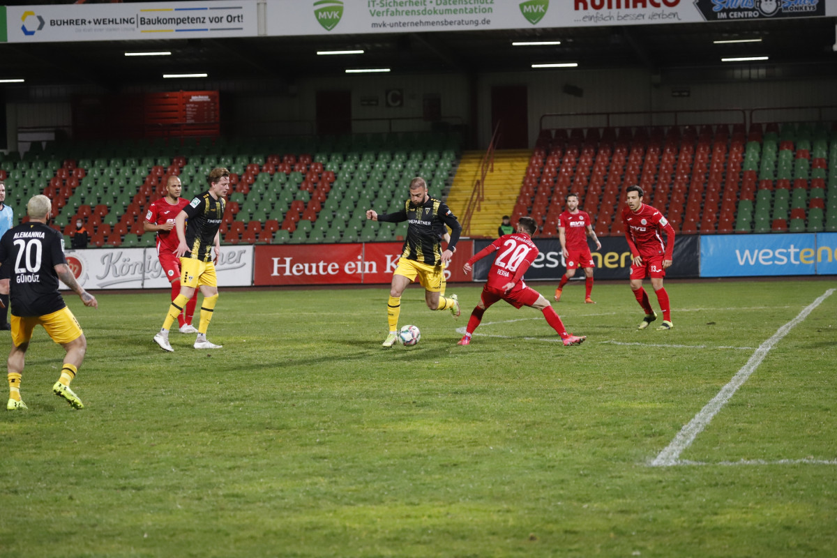 Die Alemannia hat das Nachholspiel des 23. Spieltags am Mittwochabend bei Rot-Weiß Oberhausen mit 1:2 verloren. Nico Klaß (19.) und Sven Kreyer (67.) per Foulelfmeter schossen vor 2280 Fans im Stadion Niederrhein eine 2:0-Führung für die Kleeblätter heraus. Der Anschlusstreffer von Tim Korzuschek kam einen Tick zu spät (90.+3).
