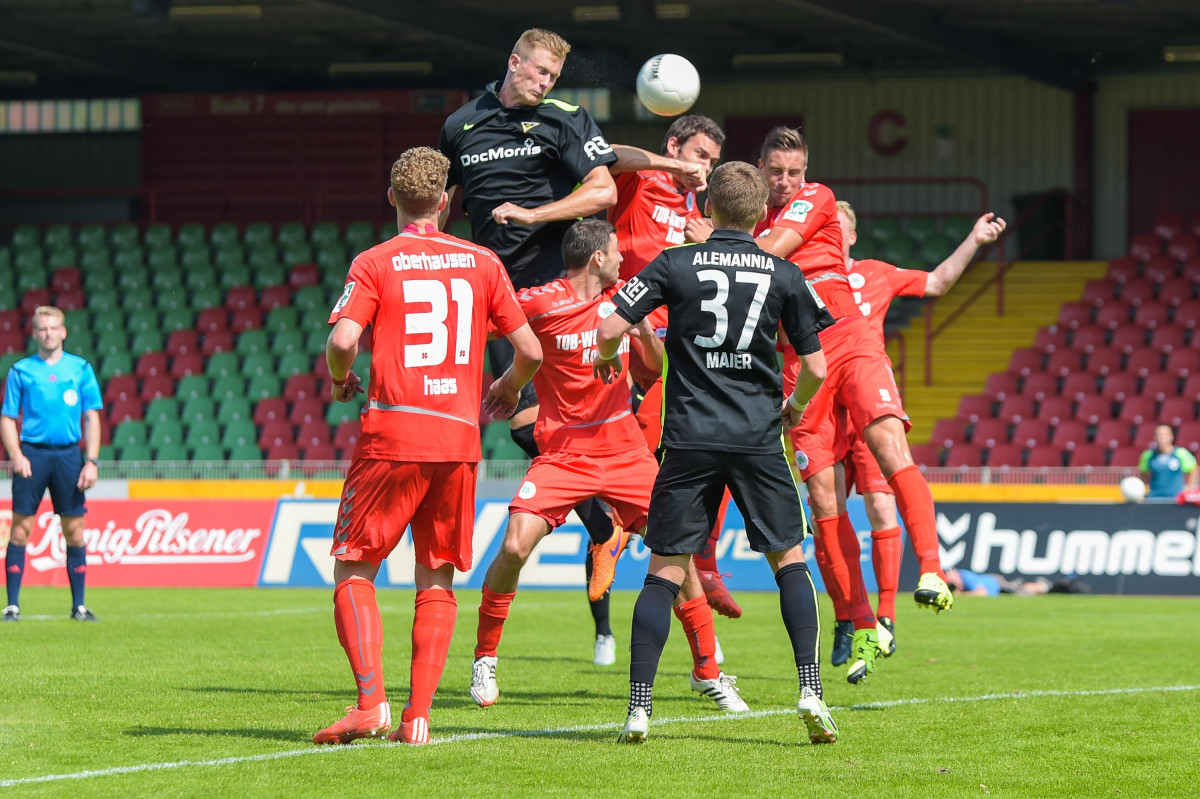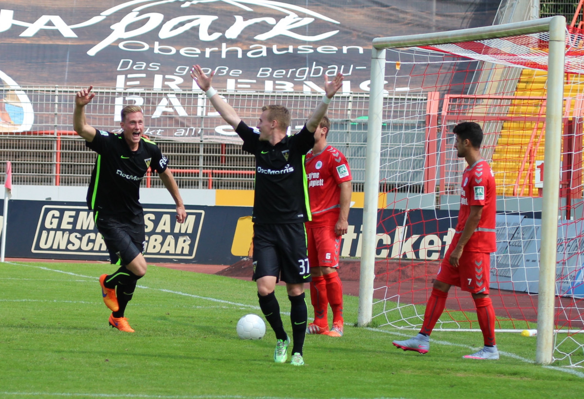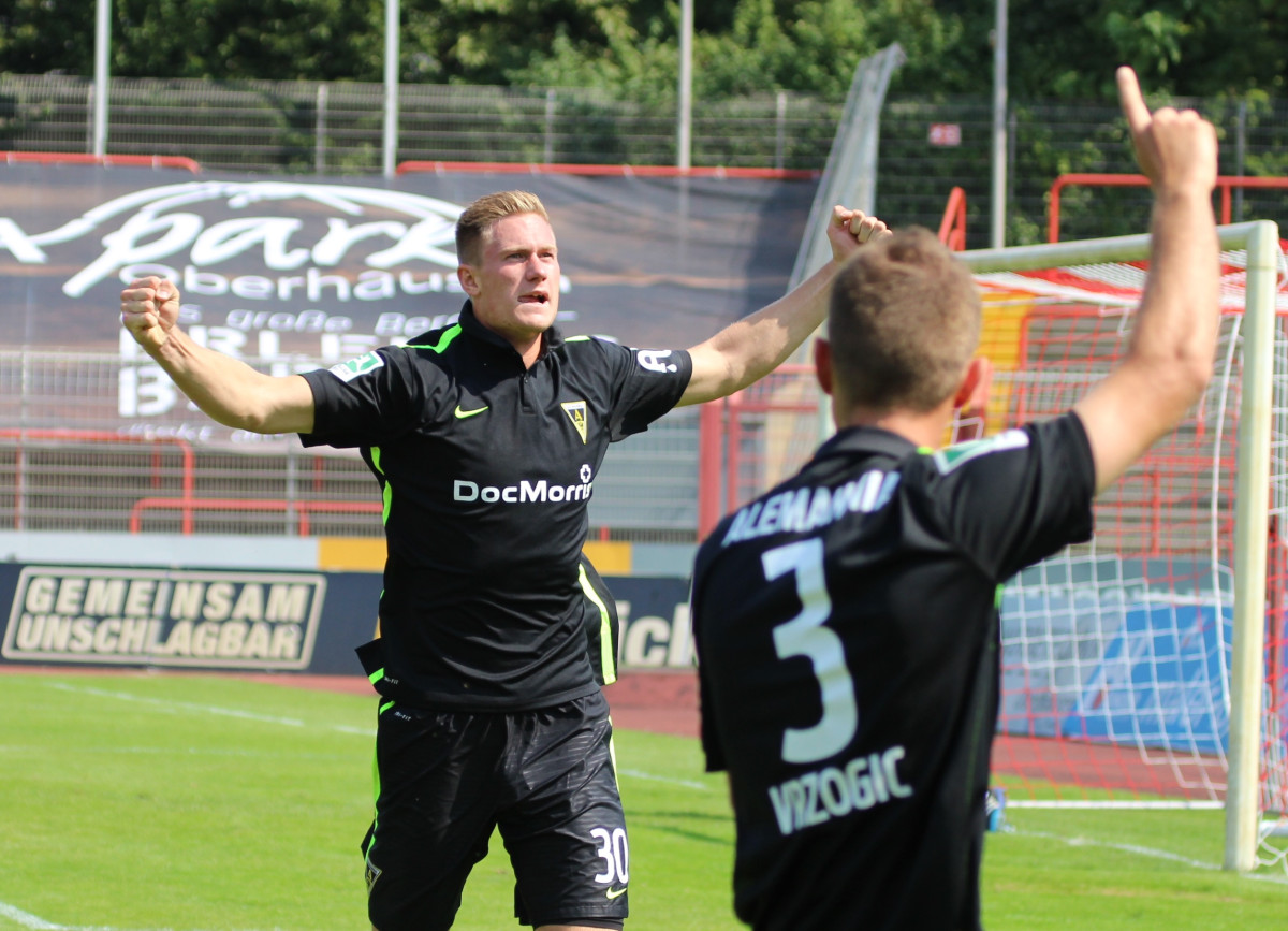 Die Alemannia hat das Spitzenduell am vierten Spieltag der Regionalliga West deutlich zu ihren Gunsten entschieden. Beim Vorjahresvierten Rot-Weiß Oberhausen siegten die Schwarz-Gelben verdient mit 4:1 (2:0). Vor 3.792 Zuschauern im Niederrheinstadion ebneten zwei Kopfballtreffer von Jannik Löhden vor der Pause den Aachener Erfolg.