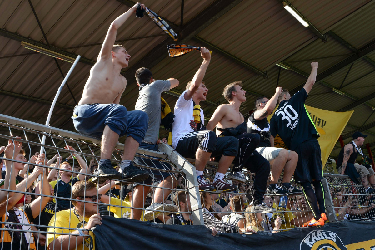Erlaubt sind Zaunfahnen, Trommeln, ein Megaphon und Schwenkfahnen bis 2m Stocklänge. Zaunfahnen dürfen ausschließlich vom Innenraum aus an den Zaun gehängt werden. Für Schwenkfahnen ist ein Fahnenpass vom Tivoli mitzuführen. Nicht erlaubt sind Blockfahnen und Doppelhalter.