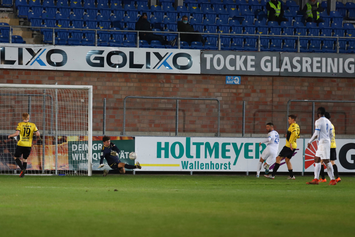 Die Alemannia musste am 17. Spieltag der Regionalliga West eine bittere Niederlage einstecken. Bei den Sportfreunden Lotte unterlag das Team von Stefan Vollmerhausen unglücklich mit 0:1. Kapitän Alexander Heinze wurde dabei bereits nach zehn Minuten wegen einer Notbremse des Feldes verwiesen. Außerdem sah Robin Garnier die fünfte gelbe Karte.