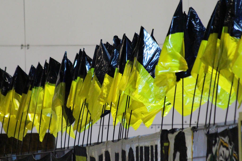 Erlaubt sind Zaunfahnen, Schwenkfahnen, Trommeln (einseitig offen), ein Megaphon sowie nach Absprache mit dem Ordnungsdienst Doppelhalter. Zaunfahnen sind an den Wellenbrechern zu befestigen. Evtl. Spruchbänder, Choreographien usw. bitte unter fanbetreuung@alemannia-aachen.de anmelden.