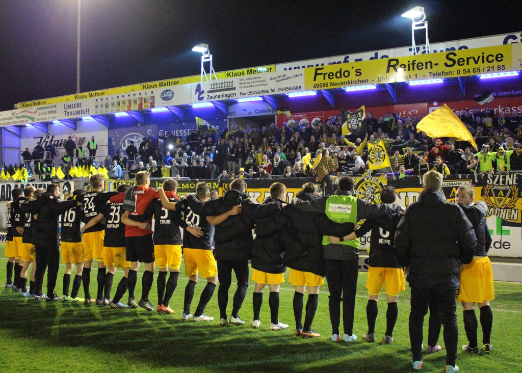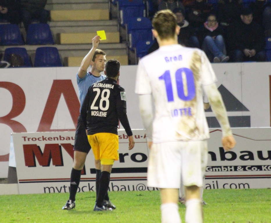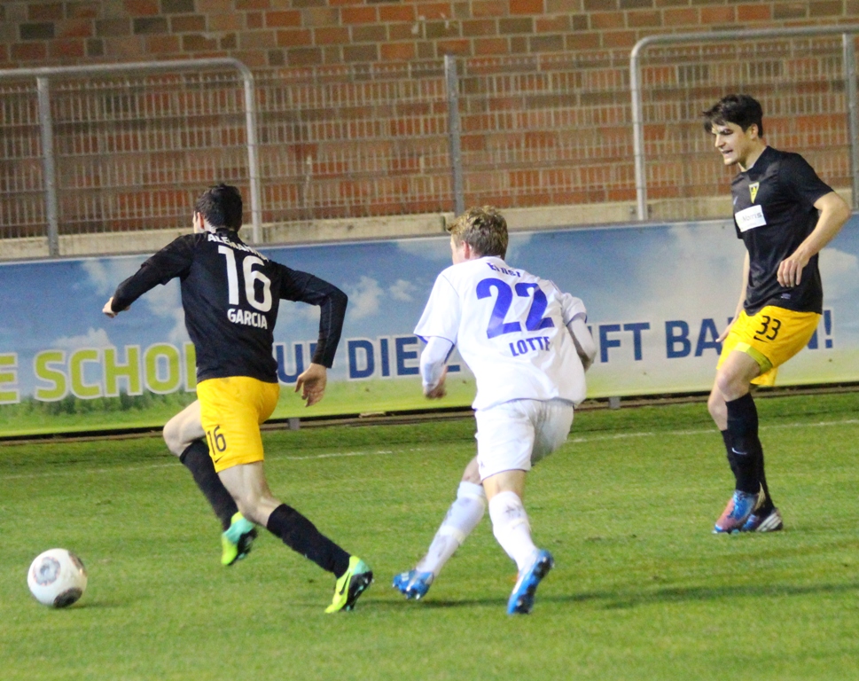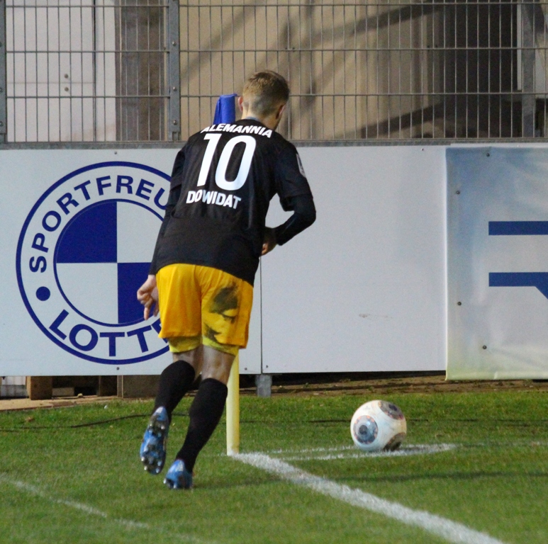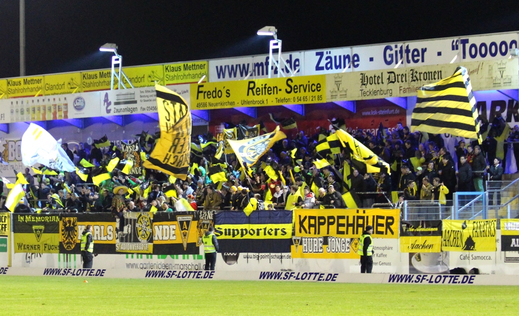 Die Alemannia hat ihre Serie beim Vorjahresmeister fortgesetzt. Bei den Sportfreunden Lotte kam die Elf von Peter Schubert am Dienstagabend zum Abschluss des 25. Spieltags vor 1.004 Zuschauern zu einem leistungsgerechten 1:1 (1:1). Beide Treffer fielen nach Standardsituationen. Marcus Hoffmann hatte die Schwarz-Gelben mit seinem Premierentor in Front geköpft.