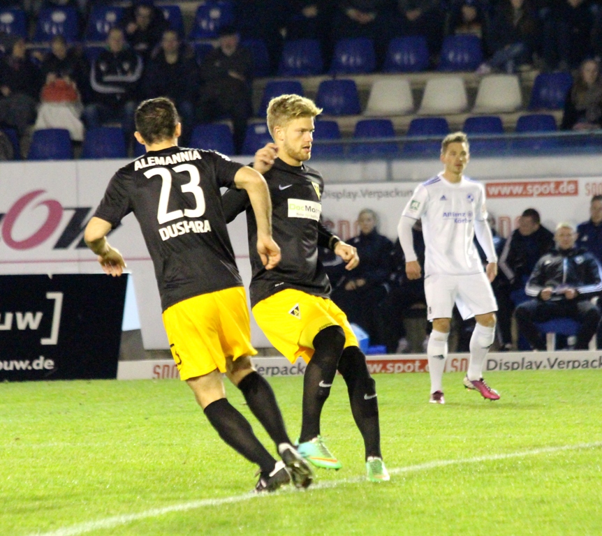 Alemannia Aachen: Löhe – Schumacher, Hackenberg, Hoffmann, Stevens – Neppe, Lejan – Garcia, Marquet (60. Moslehe), Dowidat (83. Strujic) – Duspara (73. Opper) / Trainer: Hans-Peter Schubert
