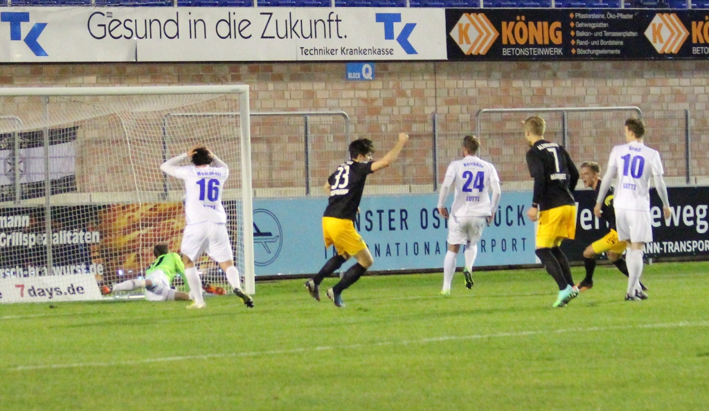 Sportfreunde Lotte: Fernandez – Ernst, Herröder, G. Nauber, Hansmann – Gorschlüter (75. Loose), Groß – Freiberger, Ludwig (60. Chahed), Shapourzadeh – Montabell (17. Kotuljac) / Trainer: Michael Boris
