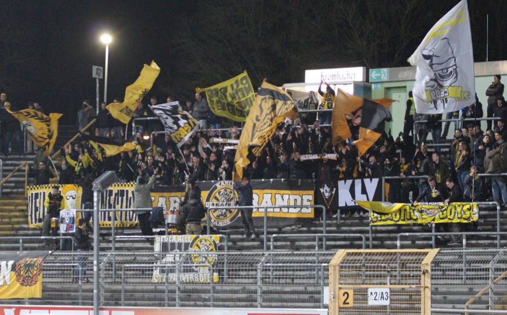 Fanutensilien: Die gängigen Fanutensilien wie Fahnen oder Trommeln sind erlaubt, Besonderheiten bitte unter fanbetreuung@alemannia-aachen.de anmelden.