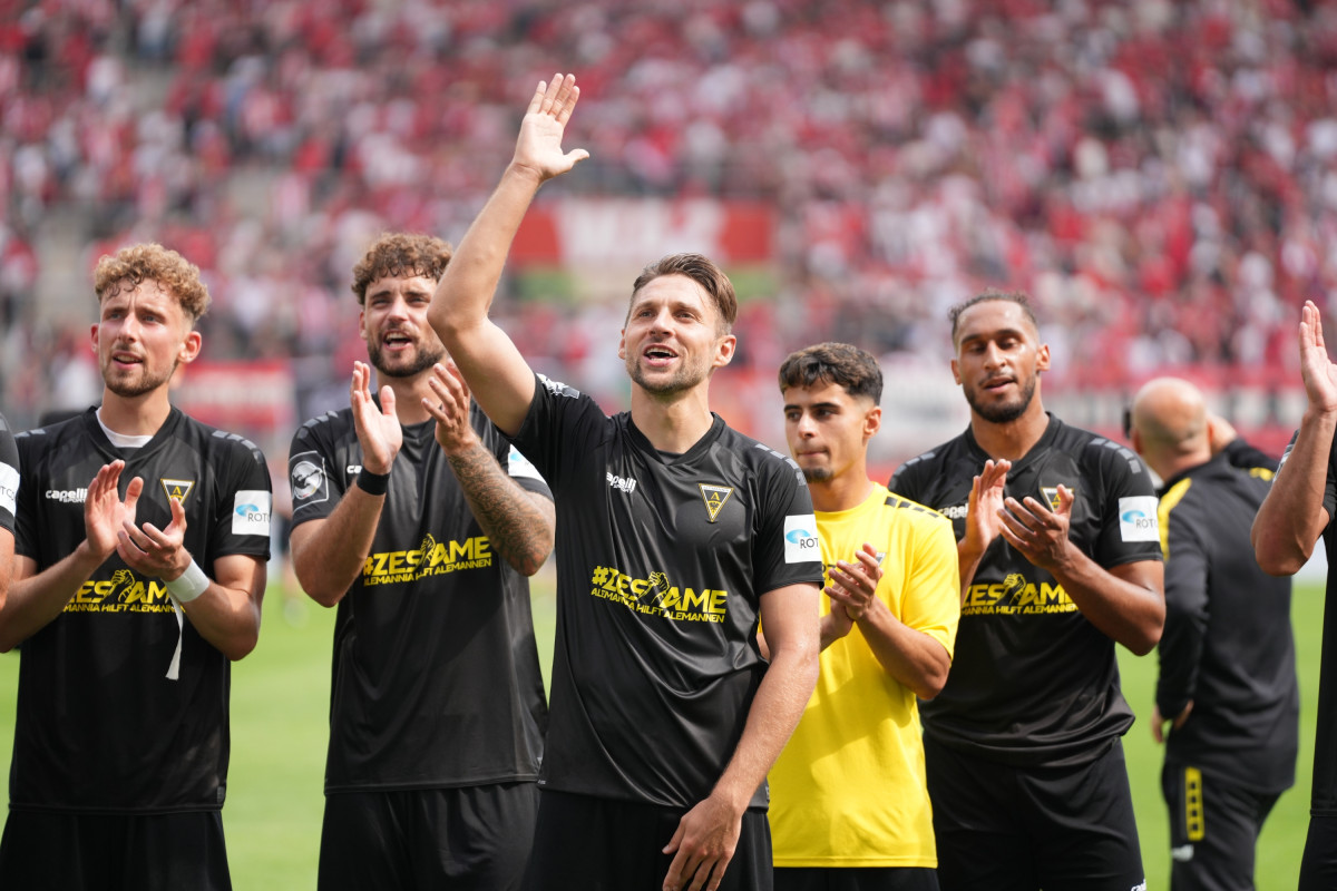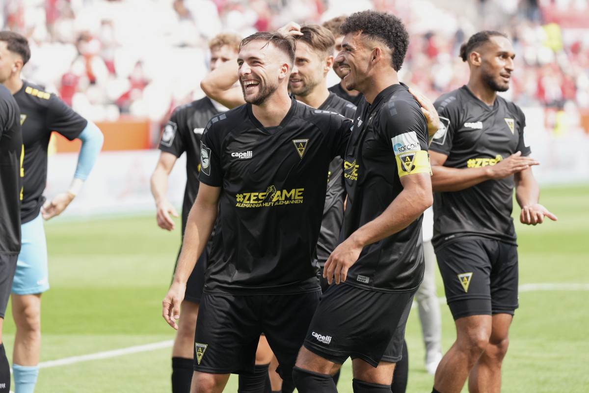 „Wir wussten vor diesem Spiel nicht, wo wir stehen“, offenbarte Alemannia-Coach Heiner Backhaus auf der Pressekonferenz nach der siegreichen Partie beim Traditionsrivalen. Etwa 95 Minuten später wussten die Schwarz-Gelben zwei Dinge: Erstens, dass sie gerade ein bockstarkes Auswärtsspiel bestritten hatten und zweitens, dass sich in dieser Verfassung jeder Gegner in der 3. Liga vor der Tivoli-Truppe hüten sollte. Backhaus hatte vor dem Spiel eine klare Marschroute vorgegeben: Mutig sein, sich nicht verstecken, eng am Mann sein, konsequentes Pressing. „Und genau das haben wir verinnerlicht“, konstatierte Kapitän Mika Hanraths am Mikrofon.