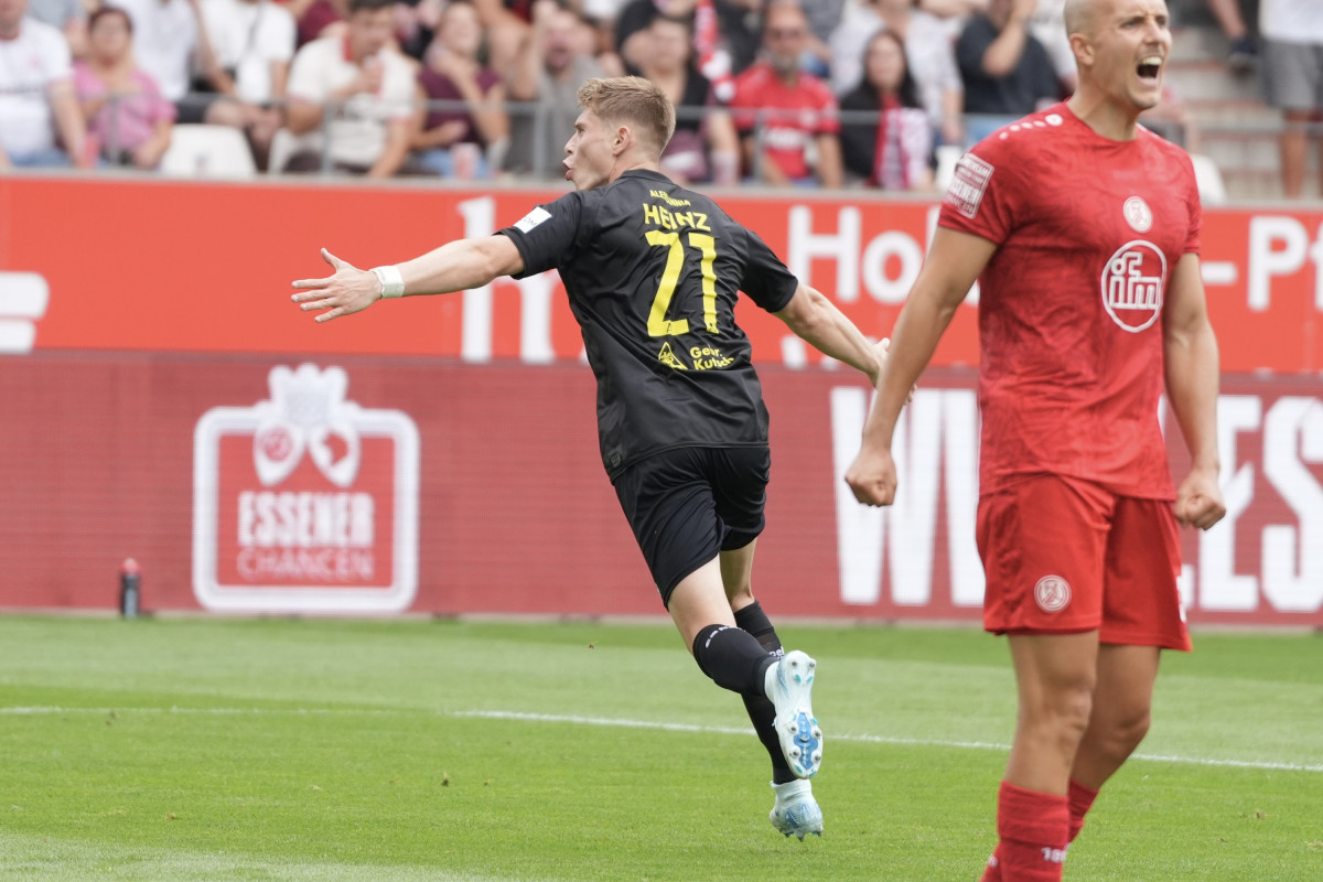Dank eines Doppelpacks von Anton Heinz (28./74.) gewann die Alemannia am Samstag ihr erstes Drittliga-Spiel seit elf Jahren mit 2:1 (1:1) bei Rot-Weiss Essen. Für die Gastgeber hatte Leonardo Vonic (37.) vor 19.200 Fans an der ausverkauften Hafenstraße zwischenzeitlich ausgeglichen.