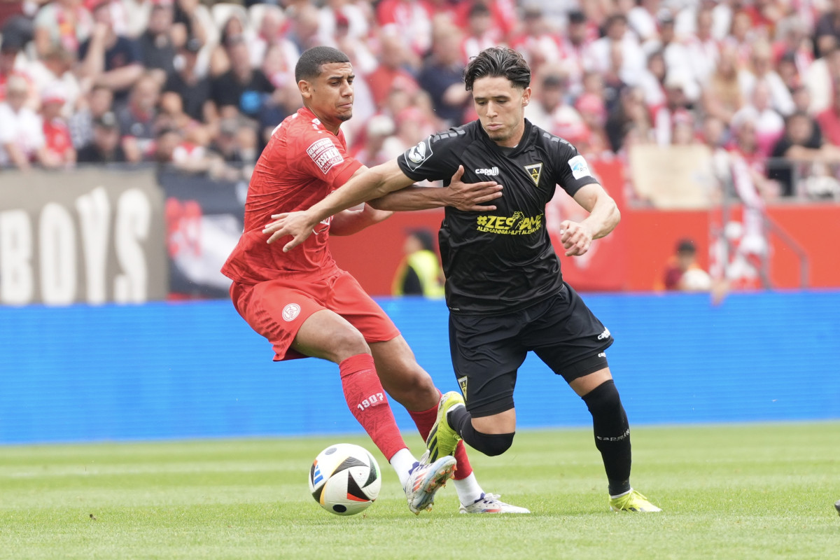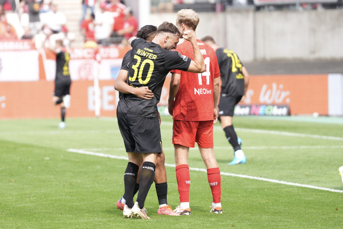 Denn nur fünf Minuten nach seiner Hereinnahme erlief Goden einen weiten Abschlag von Johnen, ließ Brumme aussteigen und sah Heinz am langen Pfosten blank stehen. Die flache Hereingabe von rechts fand ihr Ziel und Heinz abermals das Tor – 1:2, eiskalt (74.)! Die Alemannia war wieder vorne und Essen kurzzeitig geschockt. Goden verpasste eine Minute später allein vor RWE-Keeper Jakob Golz die Vorentscheidung (75.). Dann fand Heinz mit einer Flanke Töpken, der nur Zentimeter drüber köpfte (77.). Etwas Pech hatte die Backhaus-Elf in diesen Szenen, etwas Glück sollte sie dann in der Schlussphase haben – denn da kam die Mannschaft von Christoph Dabrowski noch einmal. Der gerade frisch verpflichtete Manuel Wintzheimer erhielt die Kugel nach einer Brumme-Hereingabe in perfekter Position, drehte sich und schoss – an den Innenpfosten (88.). Die Alemannia pustete durch, auch weil Wintzheimer in der dritten Minute der Nachspielzeit mit einem weiteren Versuch genau Johnen in die Arme schoss.