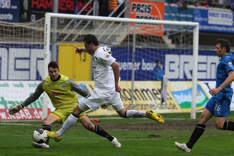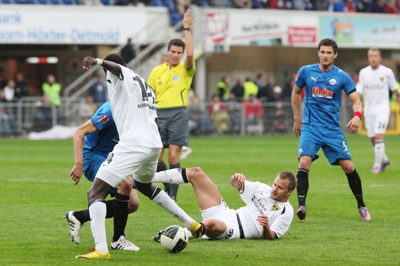 Die Anfangsphase in Hälfte 2 gehörte dem Team von Andre Schubert. Alushi forderte bereits vier Minuten nach Wiederanpfiff Stuckmann mit einem Distanzschuss aus 16 Metern, den Alemannias Schlussmann zur Ecke abwehren konnte (49.). Zwar gelang es den Ostwestfalen nun besser, ihr Spiel etwas mehr in die Hälfte der Schwarz-Gelben zu verlagern, doch die größere Präsenz in den Zweikämpfen zeigten weiterhin die Aachener. Einzig und allein der Zug zum Tor fehlte den Jungs vom Tivoli. In der 59. Minute hieß es seitens der Alemaninia „Einmal kräftig durchatmen“: Einen langen Ball nach vorne legte Mahir Saglik auf Brandy ab, der den Ball mit voller Wucht ans Aluminium hämmerte.