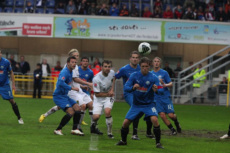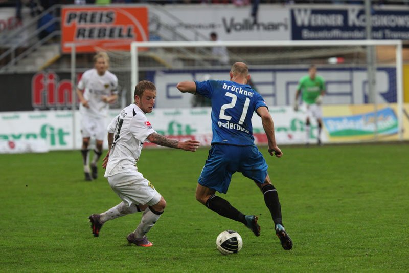 Die Gastgeber zeigten sich nun deutlich druckvoller als im ersten Durchgang, sodass Aachens Abwehrreihe mehr zu tun bekam. So gehörte auch die nächste Aktion erneut den Paderbornern, und diese nutzten sie: Jens Wemmer setzte sich auf der rechten Seite gegen Jepsen durch und brachte den Ball in den Rücken der Abwehr, wo Brückner mit einem harten Schuss abschloss und Stuckmann überwand, dem der Ball unglücklich vom Unterarm ins rechte Reck sprang – 1:1 (68.).