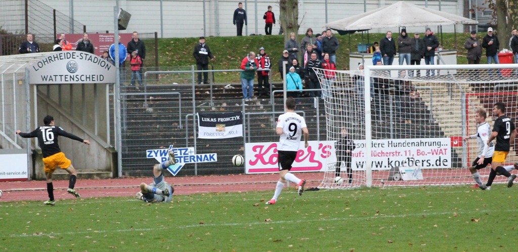 Der zweite Spielabschnitt begann mit einer Doppelchance für die Schubert-Elf. Strujic spielte Krasniqi frei, der aus zehn Metern an Fronczyk scheiterte. Marquet kam von der Strafraumgrenze zum Nachschuss, der an die Querlatte prallte (50.). Fünf Minuten später bauten die Schwarz-Gelben ihren Vorsprung dann aus. Garcia fand 20 Meter vor dem Tor keine Anspielstation und zog mit seinem schwächeren linken Fuß perfekt ab. Der Ball senkte sich hinter dem Wattenscheider Schlussmann von der Unterkante der Latte hinter der Linie nieder - 0:2 (55). Auf der Gegenseite verpassten die 09er nur knapp den Anschlusstreffer. Trisic flankte vom linken Flügel und am langen Pfosten stand Brümmer völlig blank, der volley nur das Außennetz traf (63.). Die Aachener verlagerten ihr Spiel auf Konter. Nach 67 Minuten leitete Stevens im Anschluss an eine Ecke der Hausherren den Gegenstoß ein. Strujic legte den Ball vorbei an SGW-Keeper Fronczyk und ging zu Boden. Schiedsrichter Hüwe wertete die Aktion als Schwalbe und verwarnte den Angreifer (67.). Die gut 600 mitgereisten Fans mussten heute nicht bis zum Schlusspfiff zittern. Sieben Minuten vor dem Ende machte die Alemannia den Sack endgültig zu. Strujic spielte in den Lauf von Garcia, der Fronczyk aussteigen ließ und mit seinem vierten Saisontor zum 0:3-Enstand traf. Die Tivoli-Kicker können nun mit einem komfortablen Punktepolster befreit in die beiden letzten Heimspiele des Jahres gehen.