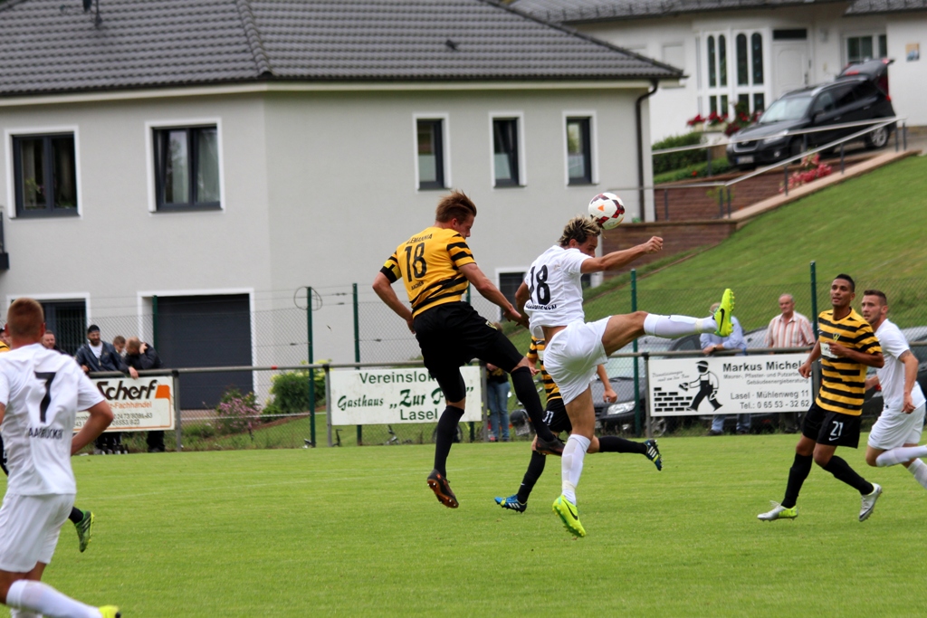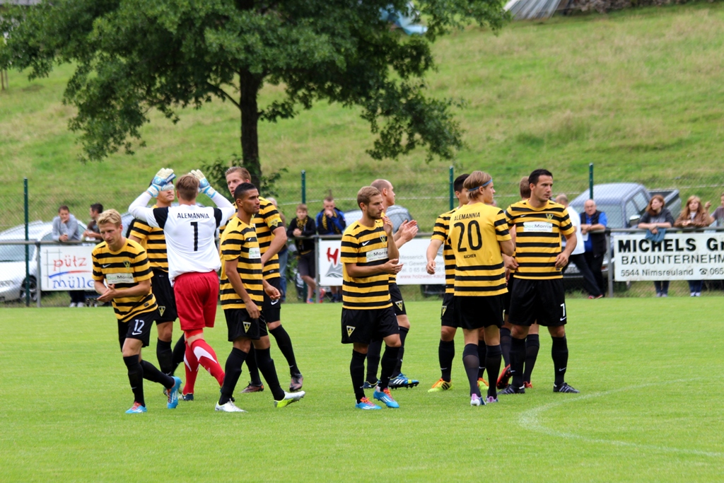 Im zweiten Vorbereitungsspiel trennte sich die Alemannia am Samstag, 12. Juli 2014, torlos von Drittligaabsteiger 1. FC Saarbrücken. Vor rund 150 Zuschauern auf der Sportanlage des SV Lasel-Feuerscheid hatten die Schützlinge von Trainer Peter Schubert während der gesamten Spieldauer die besseren Gelegenheiten.
