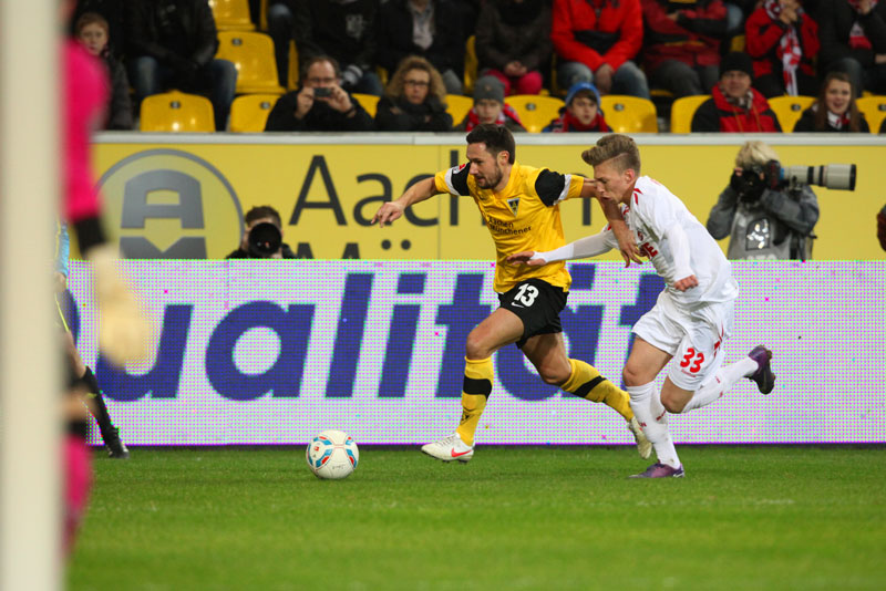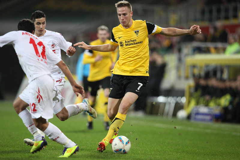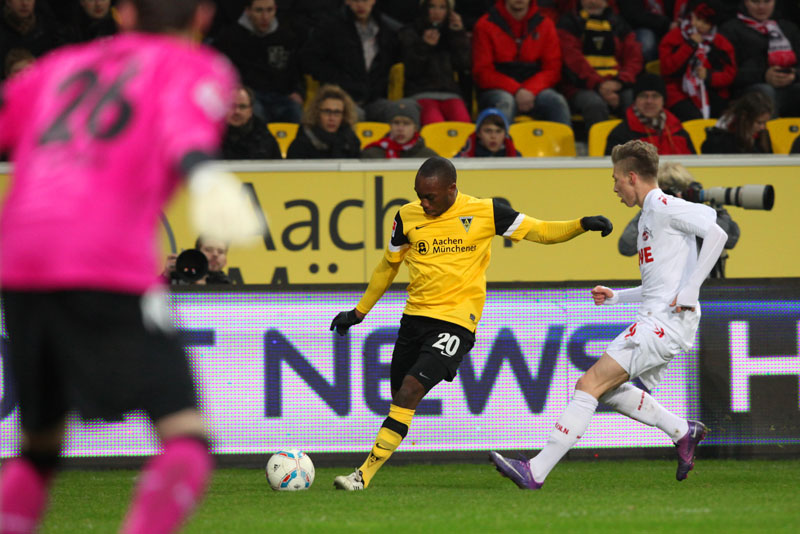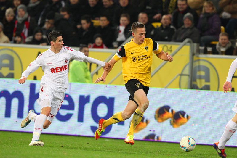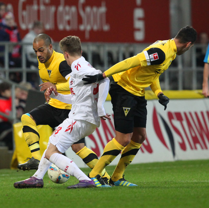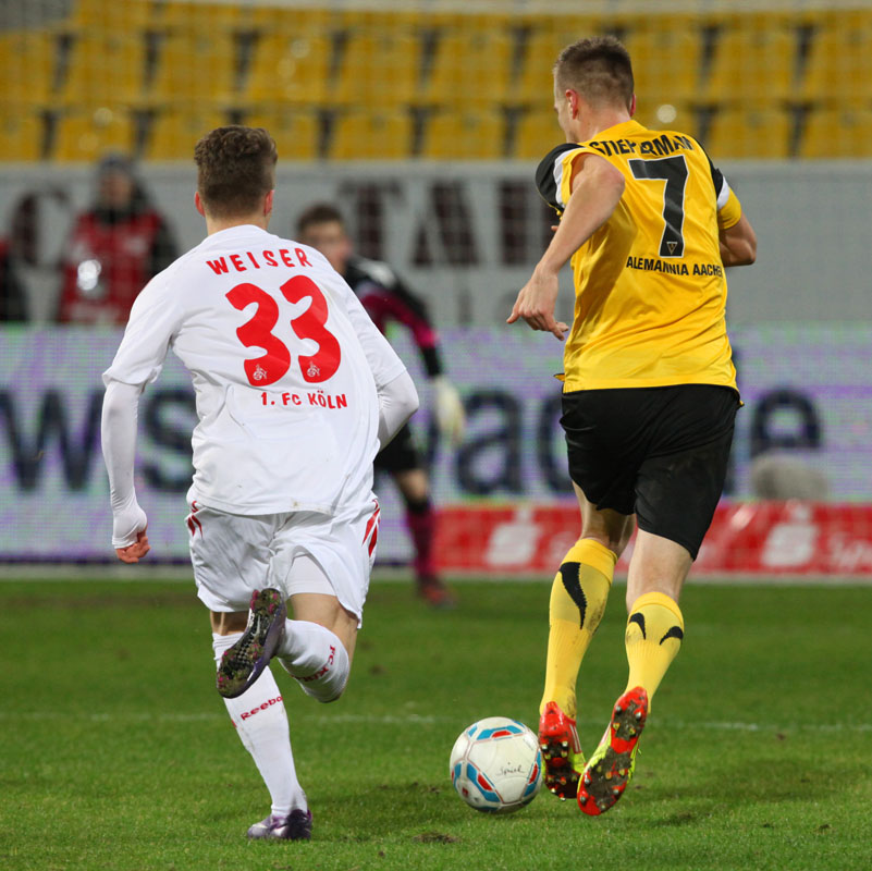 Es war nicht das ganz hohe Tempo, das beide Mannschaften an den Tag legten. Die Alemannia machte dabei noch den deutlich engagierteren Eindruck. Nach blitzschnellem Umschalten und gutem Zuspiel von Uludag hatte Stiepermann nach neun Minuten gleich die Führung auf dem Fuß, FC-Keeper Timo Horn blieb jedoch Sieger. Der Erstligist machte es besser: Den ersten richtigen Angriff über Roshi verwertete Sebastian Freis aus kurzer Distanz gegen Waterman zum 0:1 (16.).