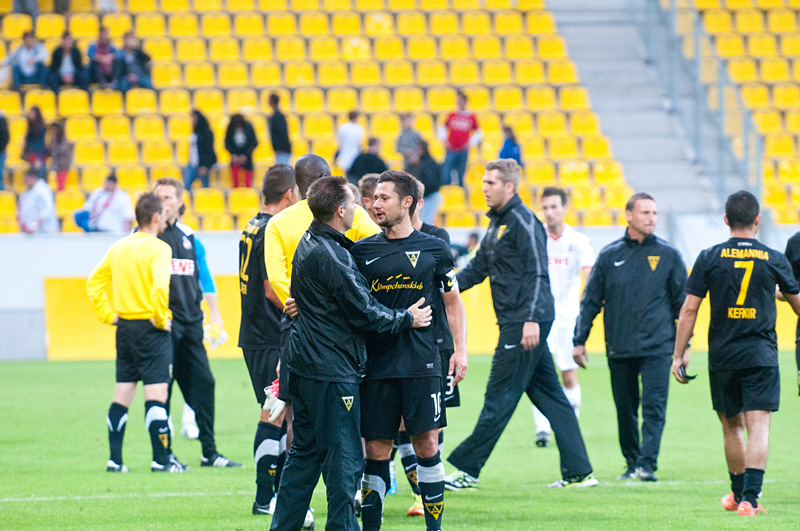 FC-Trainer Holger Stanislawski wechselte in der Halbzeit fast die komplette Mannschaft aus. Doch auch die zweite Hälfte startete mit einer Torchance für die Schwarz-Gelben. Nach einem Foul an Baumgärtel schoss Kapitän Albert Streit den Freistoß in die Hände des Gästekeepers. Nur wenige Minuten später zielte Borg nur knapp am Tor der Gäste vorbei.