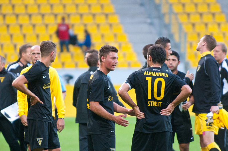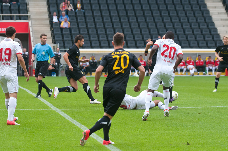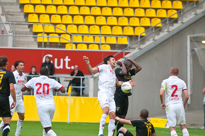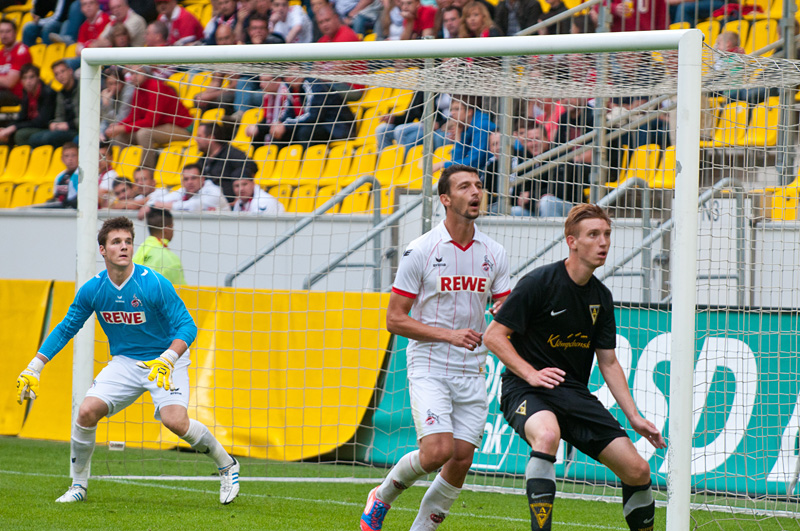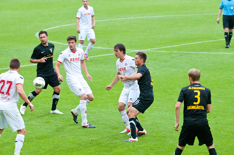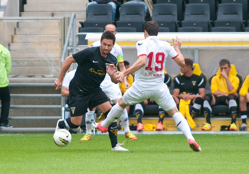 Beim ersten Testspiel auf dem Tivoli gelang der Elf von Trainer Ralf Aussem am Dienstagabend vor 10.021 Zuschauern ein am Ende verdienter 1:0-Sieg gegen den 1. FC Köln. Die Schwarz-Gelben fanden schnell ins Spiel und gingen bereits nach 4 Minuten durch ein Kopfballtor von Marcel Heller in Führung. Trotz des gerade erst beendeten Trainingslagers in Bitburg und einer Trainingseinheit am Morgen zeigte sich die Alemannia besonders im ersten Durchgang bärenstark. In der zweiten Hälfte setzte das Team die gute Leistung fort, konnte jedoch genau wie die Gäste aus Köln die wenigen Chancen nicht nutzen.