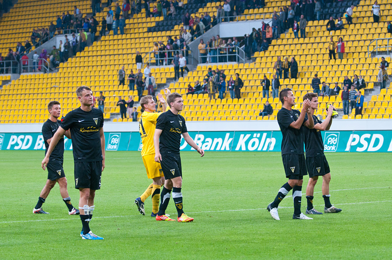 Alemannia Aachen: Krumpen – Schwertfeger, Olajengbesi (73. Erb), Stehle (73. Herröder), Baumgärtel – Demai (60. Brauer), Streit – Heller (69. Marquet), Rösler (69. Pozder), Kefkir (83. Leipertz) – Borg (60. Thiele) / Trainer: Ralf Aussem