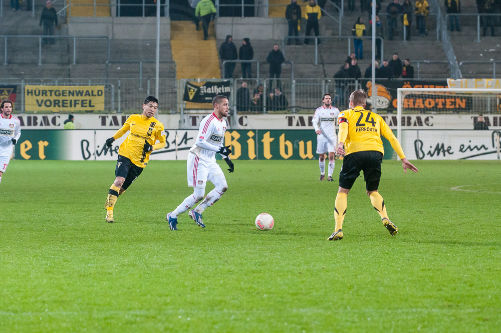 Alemannia Aachen: Flekken – Ajani, Schaffrath, Herröder, Strujic – Brauer – Simon, Odawara, Murakami, Heller – Thiele / Trainer: René van Eck
