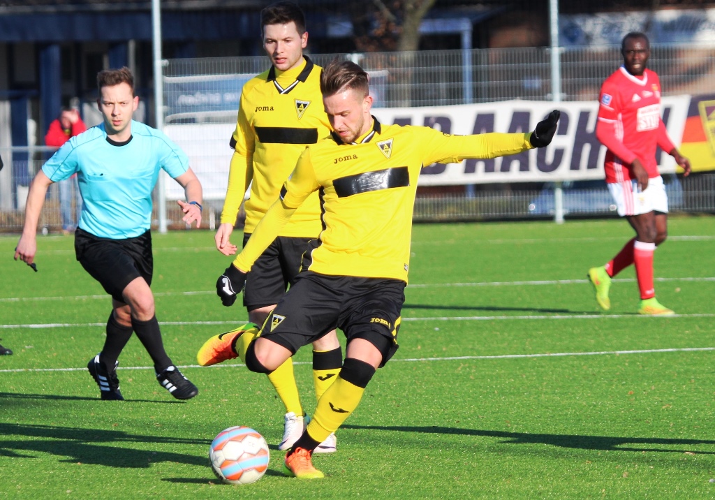 Die Alemannia hat das erste Testspiel im Jahr 2017 für sich entschieden. Gegen den luxemburgischen Erstligisten RM Hamm Benfica setzten sich die Schwarz-Gelben am Samstag vor 250 Zuschauern in Düren mit 3:1 (1:0) durch.