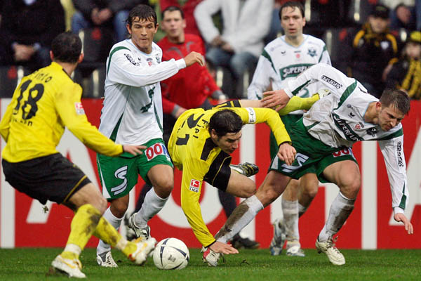 Die Aachener waren also gewarnt. Aus diesem Grund nahmen die Schwarz-Gelben direkt mit dem Anpfiff des Spiels das Heft in die Hand. Sie erarbeiteten sich bereits nach zwei Minuten die erste Chance. Die Flanke von Nationalspieler Jan Schlaudraff verfehlte jedoch ihr Ziel. Und auch das schöne Zusammenspiel zwischen ihm und Emmauel Krontiris führte nicht zum erwünschten Torerfolg (7.).