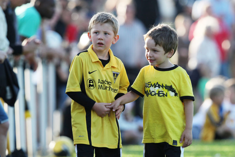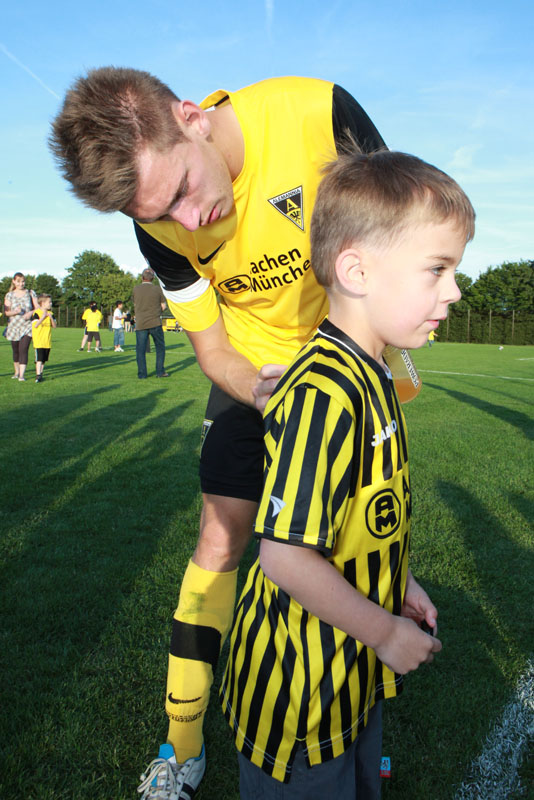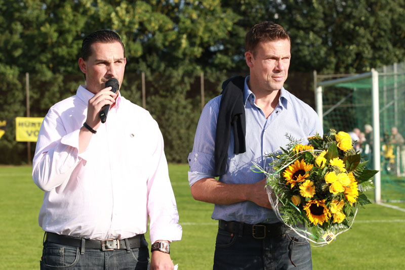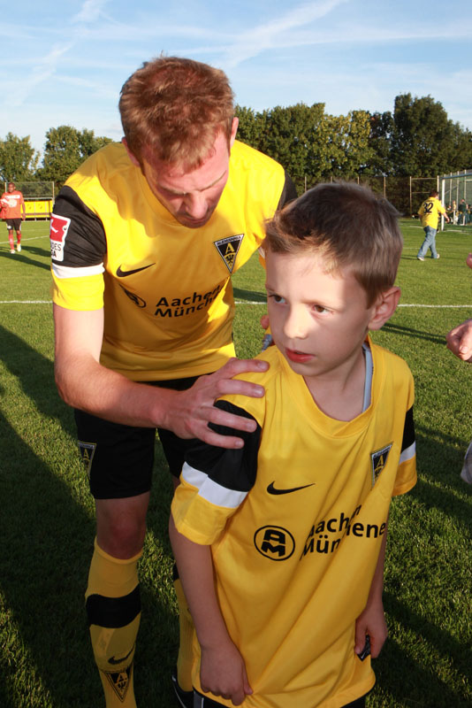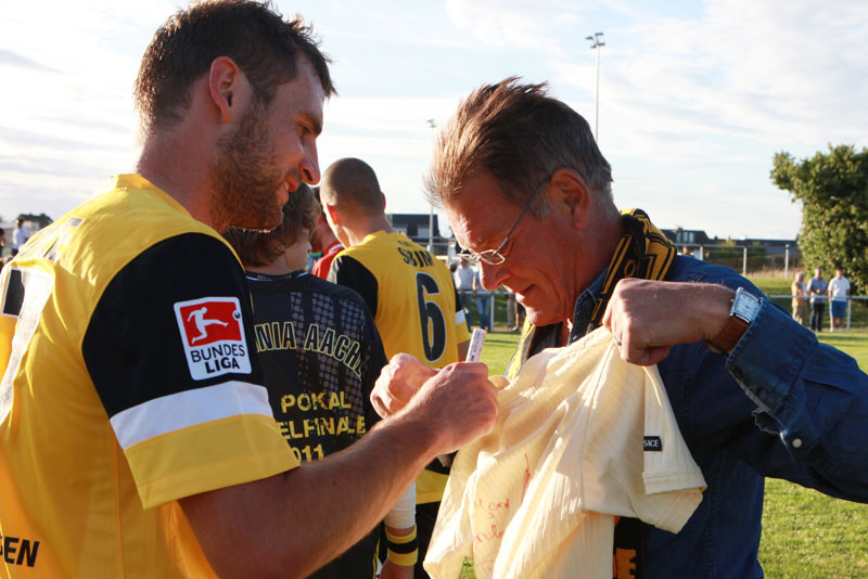 In der Halbzeit gratulierte Sportdirektor Erik Meijer dem TSV Hertha Walheim, seit Jahren enger Partner der Alemannia, zum Doppel-Aufstieg. Die Erste Mannschaft stieg in die Verbandsliga auf, die Zweite spielt künftig in der Bezirksliga. Gut für die Region – findet nicht nur der Aachener Manager.