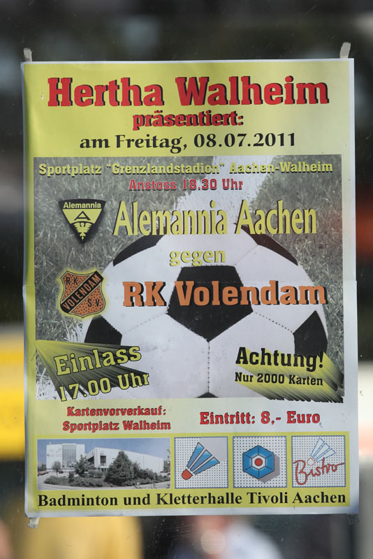 Im letzten Testspiel der Vorbereitung hat sich die Alemannia Selbstvertrauen für den Liga-Auftakt geholt. In Walheim besiegte das Team von Peter Hyballa den niederländischen Zweitligisten FC Volendam mit 3:0 (1:0). Die Treffer erzielten Benny Auer (23.), Thomas Stehle mit einem herrlichen Distanzschuss (65.) und Daniel Engelbrecht (89.). Auer scheiterte zudem mit einem Foulelfmeter an Keeper Ruiter (45.).