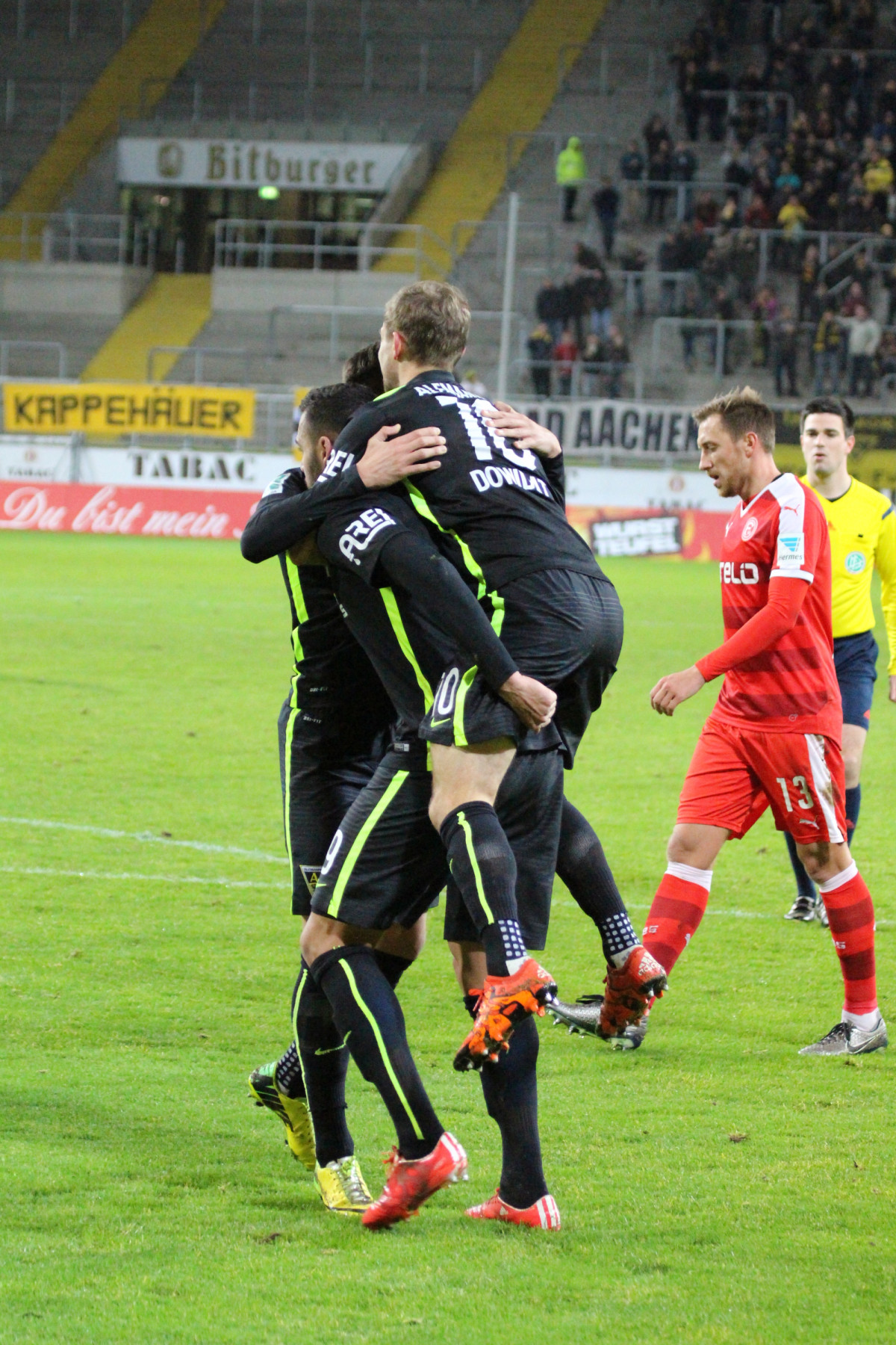 Alemannia Aachen: Sprint – Ernst (87. Korb), Propheter, Demai (46. Gaiser), Vrzogic (70. Ito) – Staffeldt, Kühnel (78. Lünenbach) – Zieba, Dowidat (59. Maier), Graudenz (46. Mohr) – Engelbrecht (66. Gödde) / Trainer: Fuat Kilic
