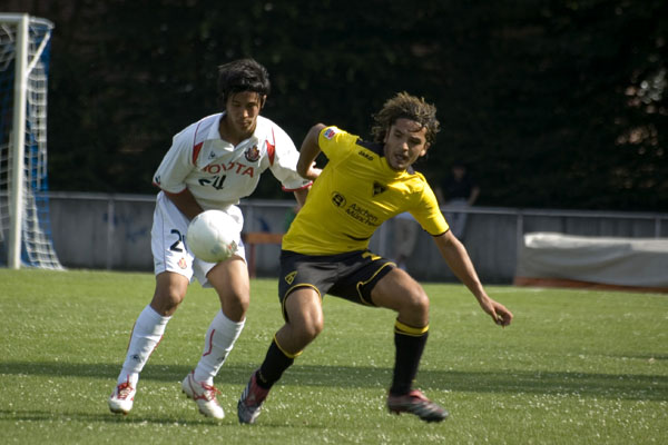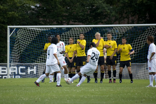 Die Alemannen, erstmals in den neuen gelben Trikots unseres Ausrüsters JAKO, begann mit mehr Elan als die Gäste, die derzeit ihr Trainingslager in Vaals absolvieren. Vedat Ibisevic stahl Keeper Narazaki den Ball, verzog jedoch aus spitzem Winkel. Auch Jan Schlaudraff verfehlte mit zwei Schüssen knapp das Tor. Thomas Stehle setzte einen Kopfball über den Kasten.
