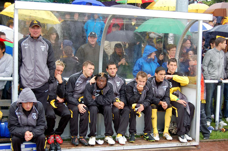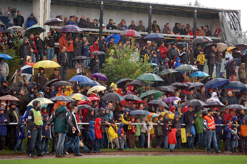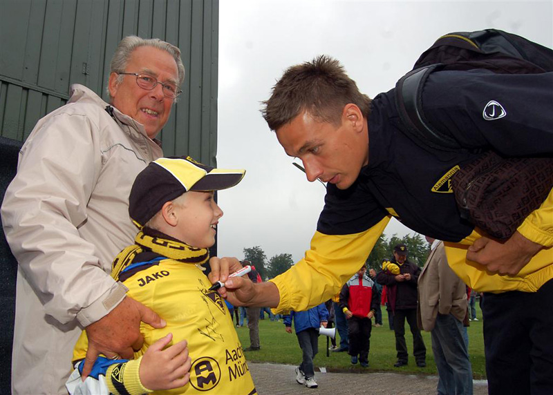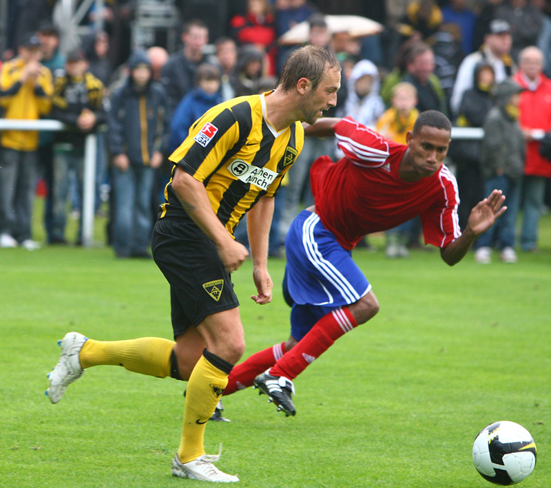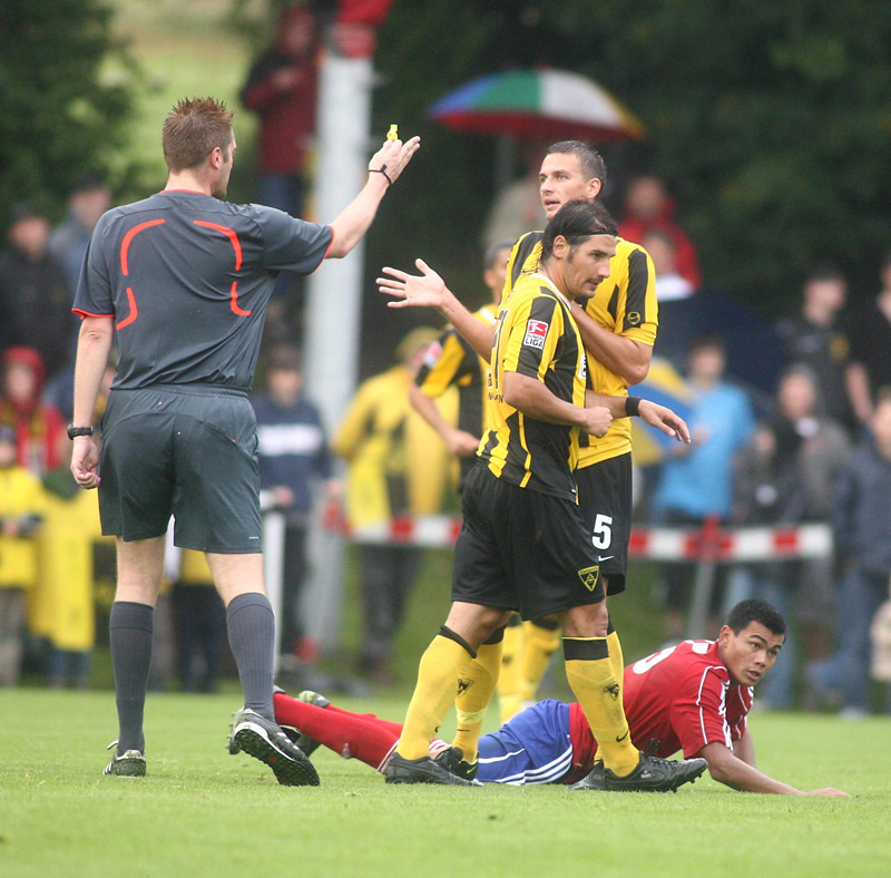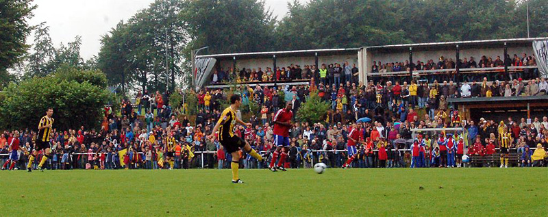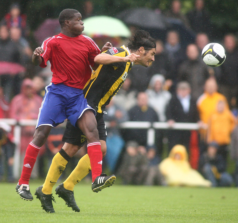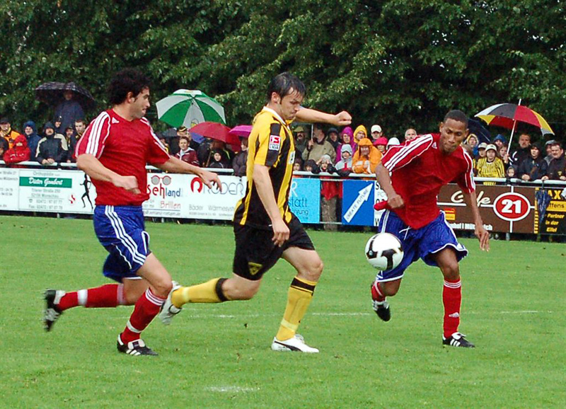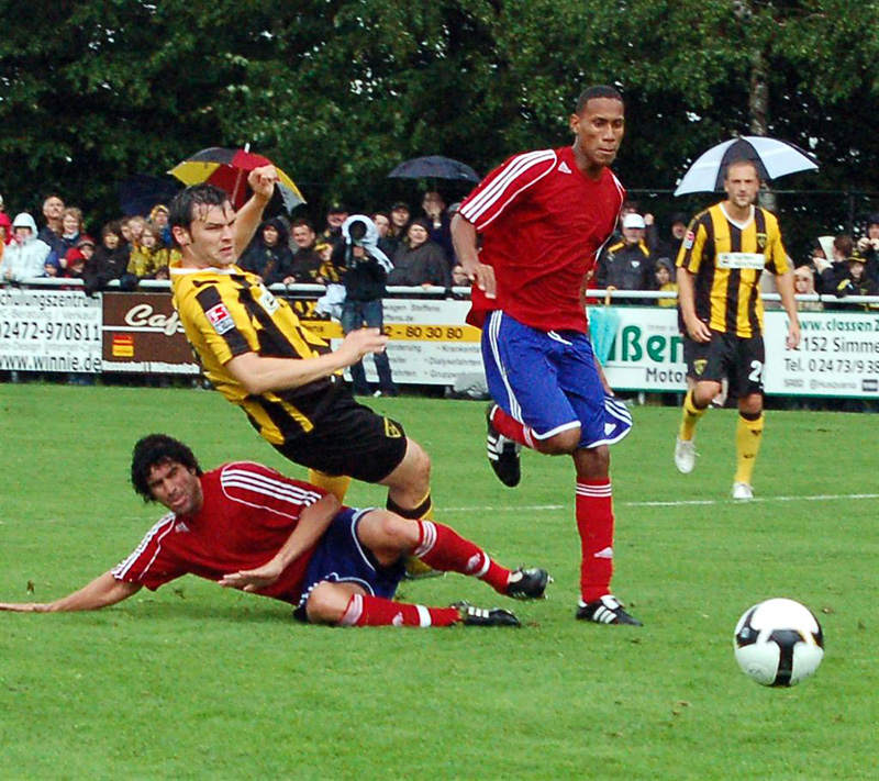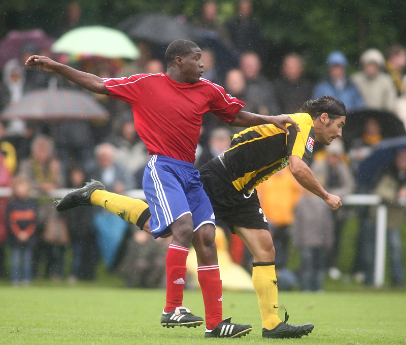 Zu den guten Rahmenbedingungen zählten nur die hervorragende Platzanlage des TuS Mützenich sowie die gut 2500 gut gelaunten Zuschauer. Das Wetter gab seinen Teil nicht dazu und so regnete es bereits vor der Partie in Strömen. Bevor der Pfiff des Schiedsrichters ertönte, wurde, wie es sich für eine Nationalmannschaft gehört, die kubanische Hymne gespielt. Danach ging es dann auch gleich los und es war schnell zu erkennen, welche Mannschaft die größeren Spielanteile besitzen sollte. Die Alemannia drängte die Jungs aus Kuba gleich in ihre eigene Hälfte und so gab es nach sieben Minuten die erste Torchance der Schwarz-Gelben. Einen Freistoß aus 20 Metern legte Achenbach ab auf Milchraum, der das Tor nur um wenige Meter verfehlte. Nur fünf Minuten später gingen die Schwarz-Gelben in Führung. Nach einer Ecke von Achenbach konnte der kubanische Torhüter den Ball nur aus dem Strafraum fausten, wo Neuzugang Thorsten Burkhardt den Ball nach kurzer Annahme flach ins rechte untere Eck platzierte (12.) Aus der ersten Ecke der Kubaner entstand in der 22. Minute die nächste Gelegenheit der Alemannia. Über einen schnellen Konter über Daun und Burkhardt bekam Abdul Özgen die Kugel am 16er und zögerte nicht lange, verfehlte das gegnerische Gehäuse jedoch knapp. Bis auf einen eher harmlosen Freistoß der Kubaner passierte nicht mehr viel und so gingen beide Mannschaften beim Stand von 1:0 für die Alemannia in die Kabine.