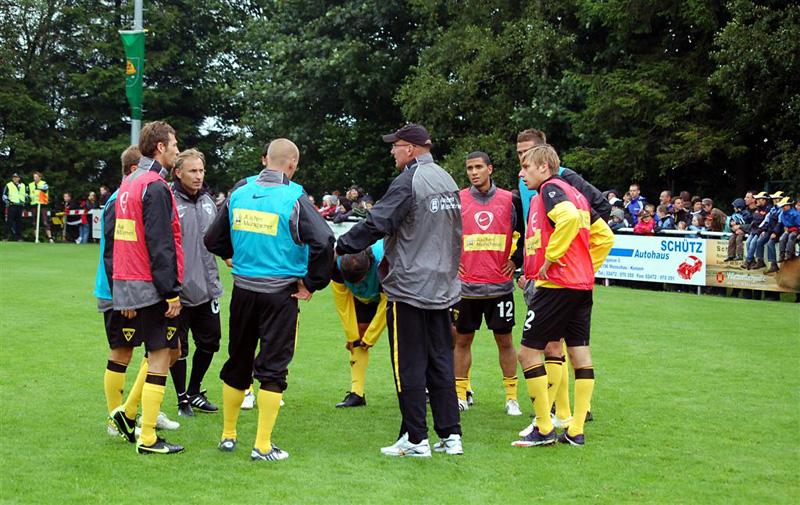 Im zweiten Test der neuen Saison musste Trainer Jürgen Seeberger auf Szilárd Nemeth verzichten, der sich am Dienstag beim Training am Außenband verletzte. Neben Reiner Plaßhenrich und Thomas Stehle, die sich beide noch in der Reha befinden, war auch David Hohs (Magenprobleme) nicht im Kader. Hinter der Abwehrkette, die Aimen Demai, Lukasz Szukala, Mirko Casper und Timo Achenbach bildeten, hütete Alemannias Nummer 1 Thorsten Stuckmann das Tor. In der Zentrale zogen Kapitän Cristian Fiel und Thorsten Burkhardt die Fäden. Auf den Außenpositionen wirbelten links Patrick Milchraum und rechts Markus Daun, der kurz vor dem Spiel für Florian Müller in die Partie kam. Müller wurde auf Grund einer Oberschenkelblessur geschont. Im Angriff stürmte neben Benny Auer Abdul Özgen, der für den verletzten Nemeth für Torgefahr sorgen sollte.