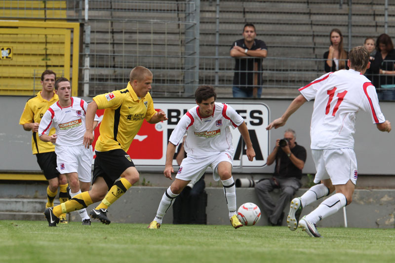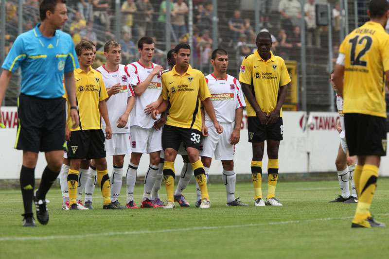 Alemannia Aachen: Hohs (46. Krumpen) – Demai (46. Wilschrey), Olajengbesi (46. Herzig), Stehle (46. Jansen), Huyghebaert (46. Casper) – Zdebel (46. Feisthammel) – Müller (46. Kratz), Stieber (46. Burkhardt), Wanneck (46. Uludag) – Engelbrecht (46. Tsoumou), Ojamaa (46. Gueye) / Trainer: Peter Hyballa